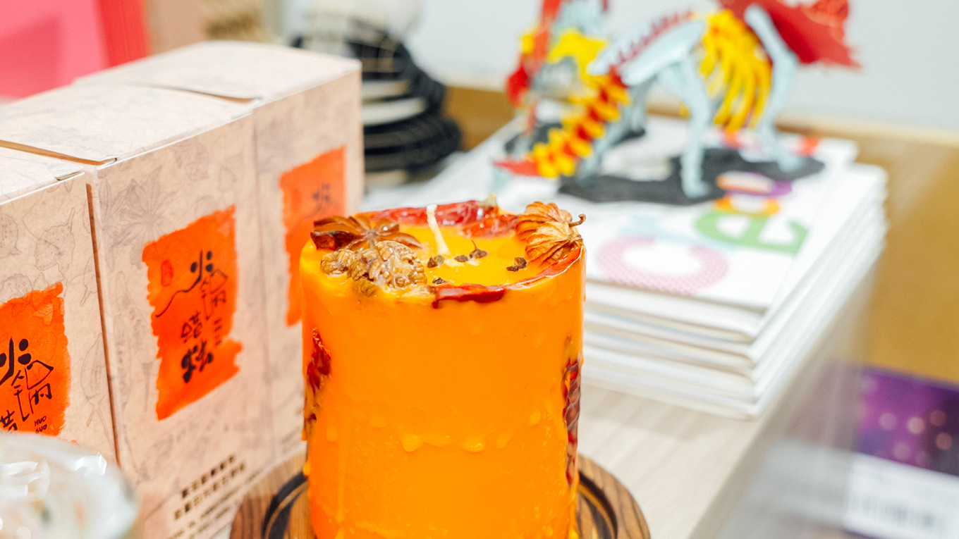 最令我惊奇的是摆在文创店正中间的“火锅底料”,当我诧异于文创店怎么还卖起火锅底料来的时候,才发现原来这是火锅底料造型的香薰。橙黄的牛油,热辣的干辣椒,大把的八角茴香花椒,一块独特的香薰连细节都做的十分到位,让人忍不住想把它赶紧下锅熬煮。