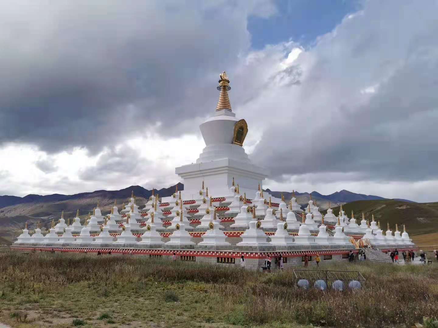 只见那白塔,巍峨壮观,矗立在蓝天白云之下,在微微阳光中闪烁着圣洁的光辉!