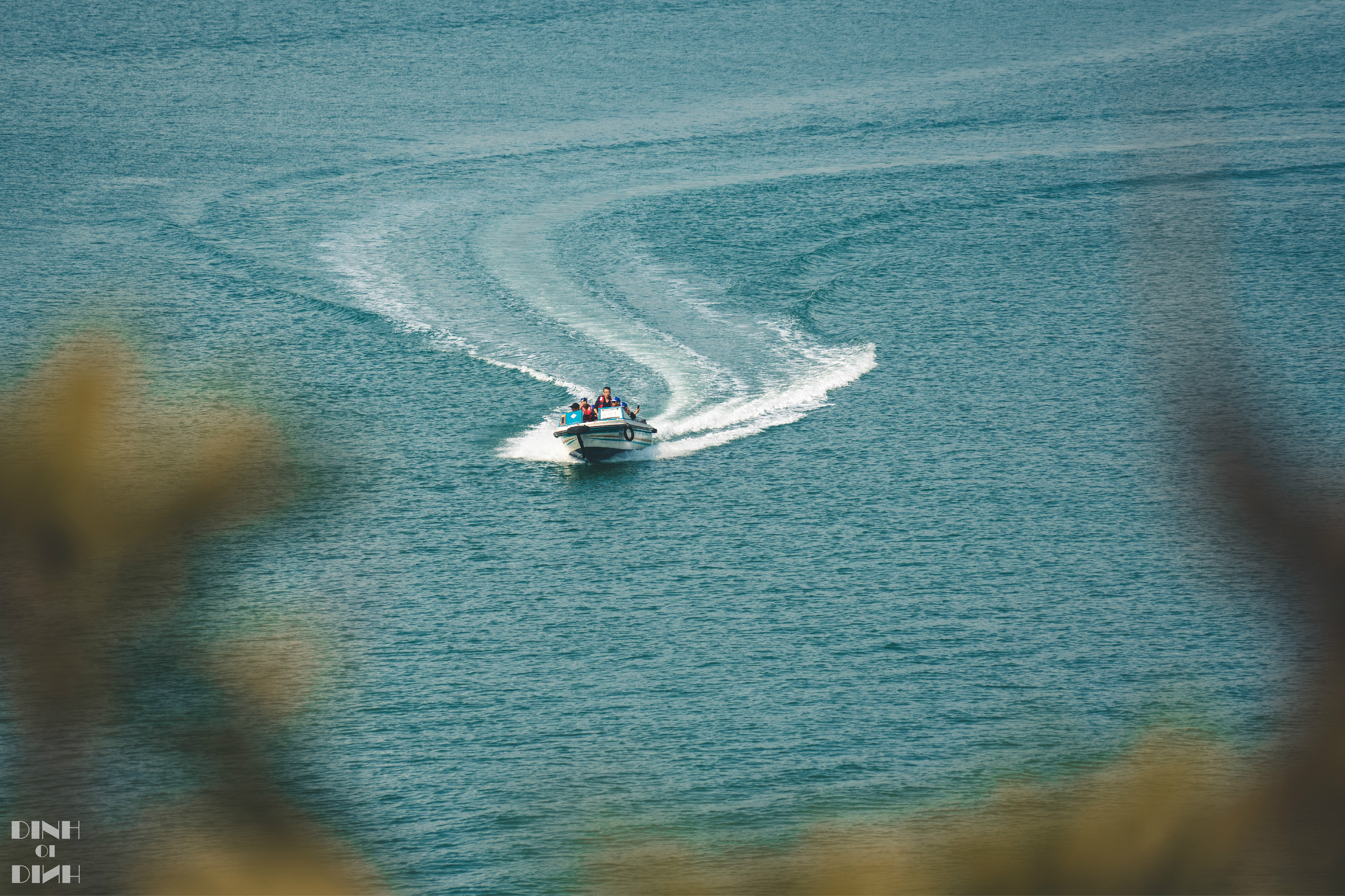 在码头就是乘坐这样的快艇上岛,一般8个人左右一艘船。一开始我们以为是慢慢的开,结果师傅一提速,妈呀风可大了,戴帽子的孩子一定要压好帽子。