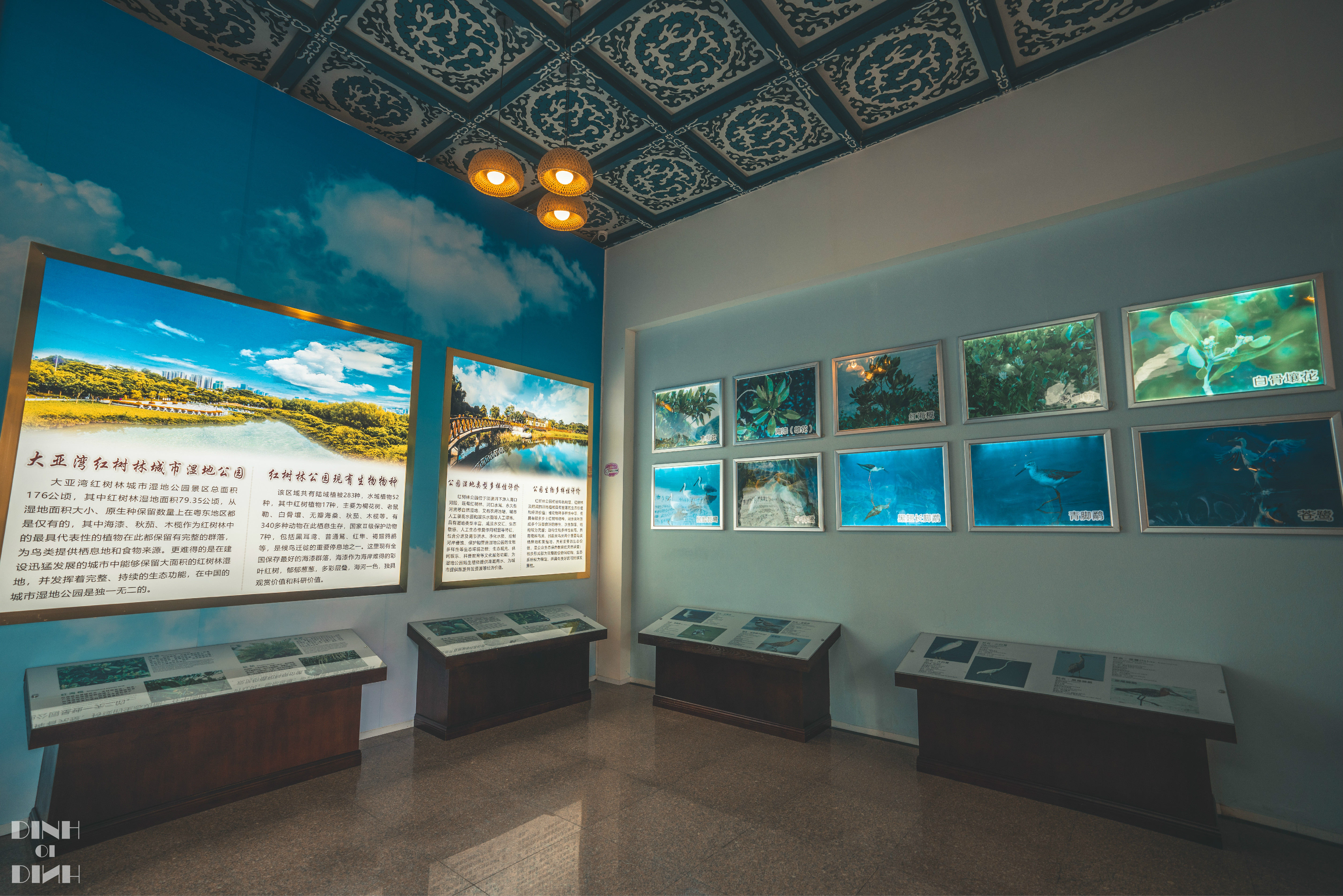 一座中式四合院的建筑,居然是红树林的科普馆。科普馆主要由两个独立的展览室和一条展示廊组成。通过标本、图片、文字、及讲解对游客普及红树林的有关知识。