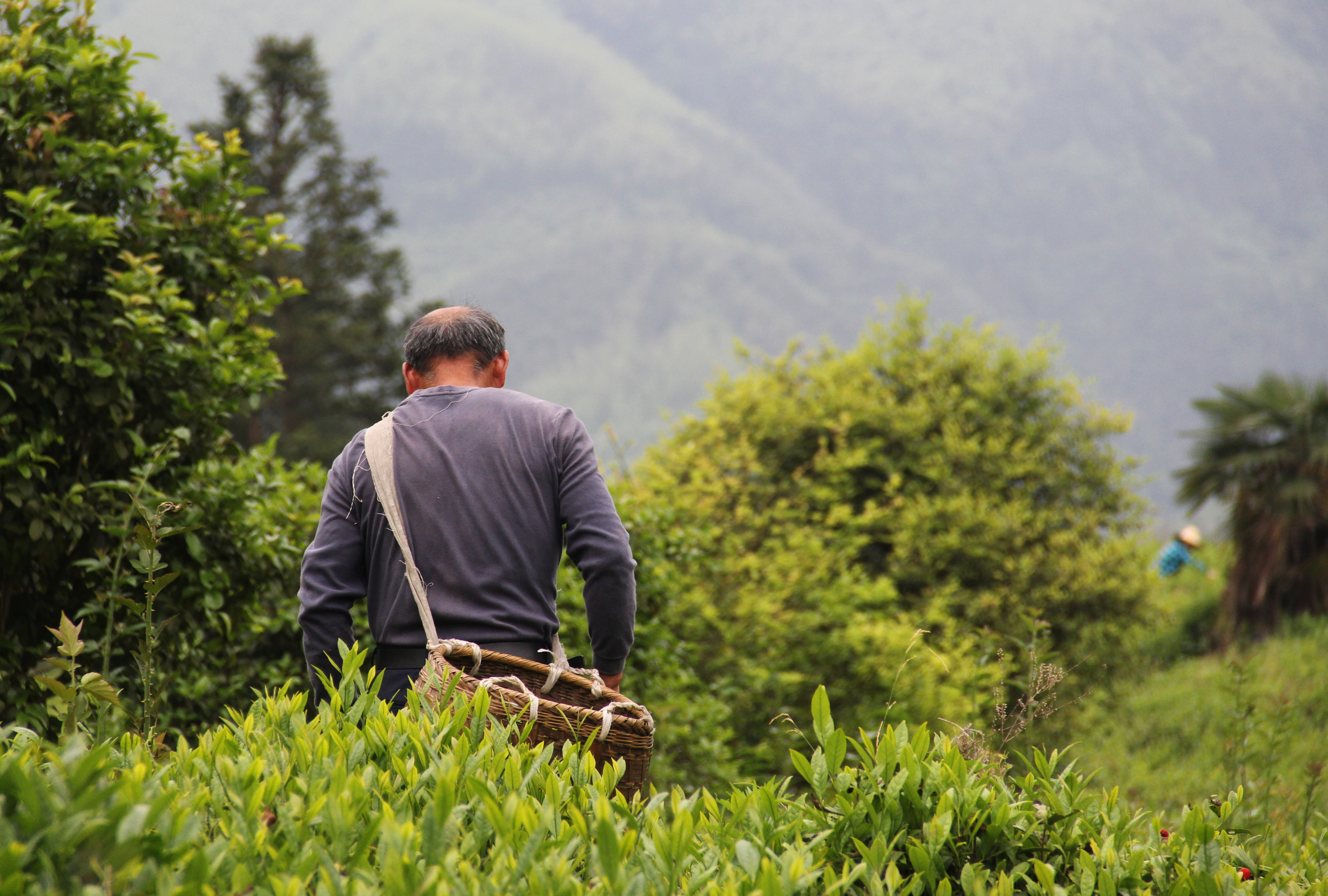 一行人半天摘到的茶叶重量差不多35斤,由工人背下山。山路崎岖,泥泞难行也得带下山去。茶叶的利润很是可观,但从茶叶的制作到销售整个期间的耗损与各种成本付出也是非常巨大的。新鲜的叶子与干茶的重量是5:1的比例,干茶炒熟后还要再加工,搓揉、质检、包装、运输,人力成本等的考量下,茶叶的价格也就水涨船高了。当然,从神农氏开始,我们的祖先就开始饮茶,“神农尝百草,日遇七十二毒,得茶而解之”,在茶文化的加持下,饮茶更是一种文化的体现。