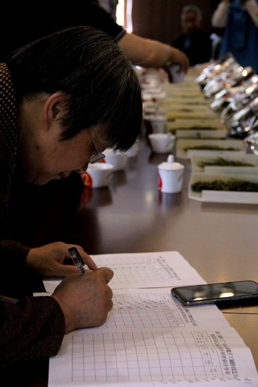 爷爷的初恋是太平县人,而太平县是猴魁的最佳产地。下图是质检员在太平县挑选品相最佳的猴魁参加第三届猴魁比赛。