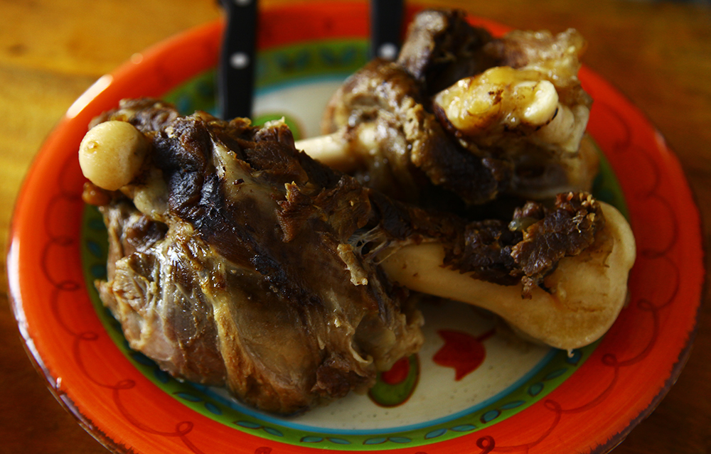 蒙古大师傅正在帮我们切开烤羊腿,香味一下就窜出老高。不过我觉得羊腿肉有点硬,羊排更嫩,虽然那个肉少点。