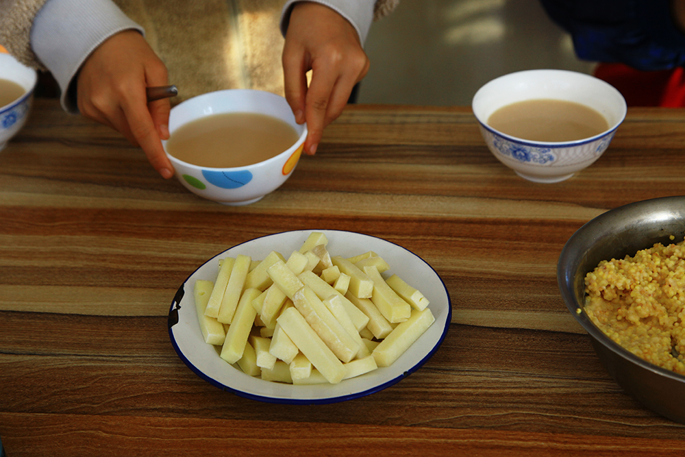 牧民为我们一群人准备了他们家常会吃的早餐,有下面照片里这种奶油拌炒米,酸酸甜甜的有浓厚的香味。跟着我们的店主告诉这是蒙古人待客的美食,那种发酵后的酸奶油叫爵克,我们吃的炒米不是小米而是糜子。