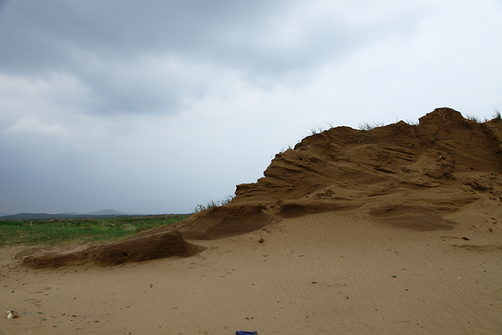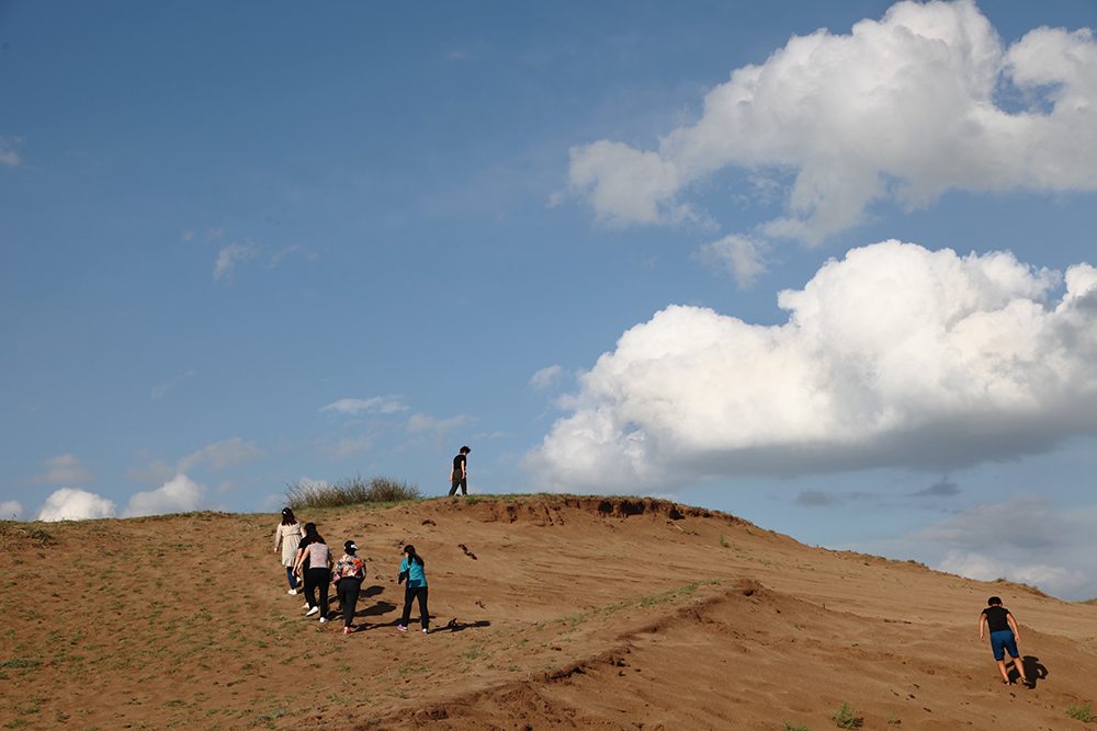 最后一天,安排的是沙窝之行。太仆寺旗离最近的沙地边缘也有70公里远,是店主带着去的。沙地是一种变化中的地貌,干旱就沙化,雨水多就铺上薄薄的稀疏绿草,每年都在变化,所以也要找。选一片大大的沙丘,天高云涌,照片就多了去了,普遍自带喜感。而草原上的天真是说变就变了,眼看着白云就渐变成灰云,厚厚地压下来,苍凉冷峻的味道就出现在画面中。突然雨点就噼噼啪啪下来,一伙人大呼小叫地望回跑,风卷着沙,雷声隆隆!狼狈到这么多人竟没一张照片能发朋友圈晒灾难!