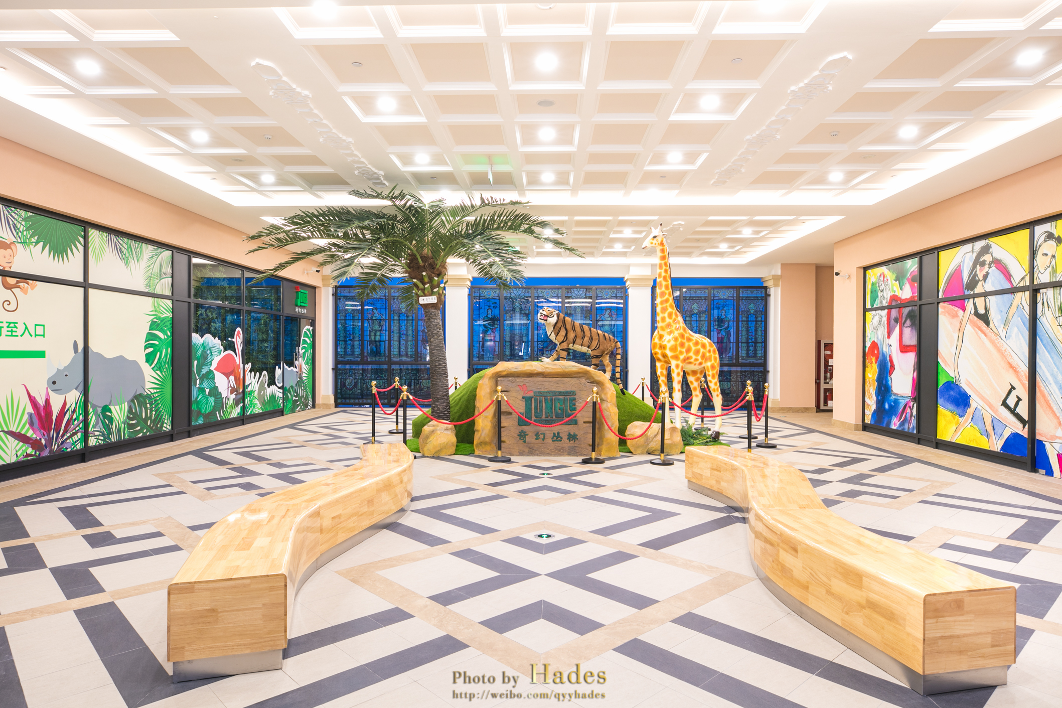 小镇入口—游客服务中心—圣雅各布广场—商业广场—Brooks Brothers—Jimmy Choo—圣佛罗伦萨广场—Michael Kors—Calvin Klein—Gap—骑士广场—大众广场—Adidas—VIP休息室—二层—奇幻丛林—夜景
