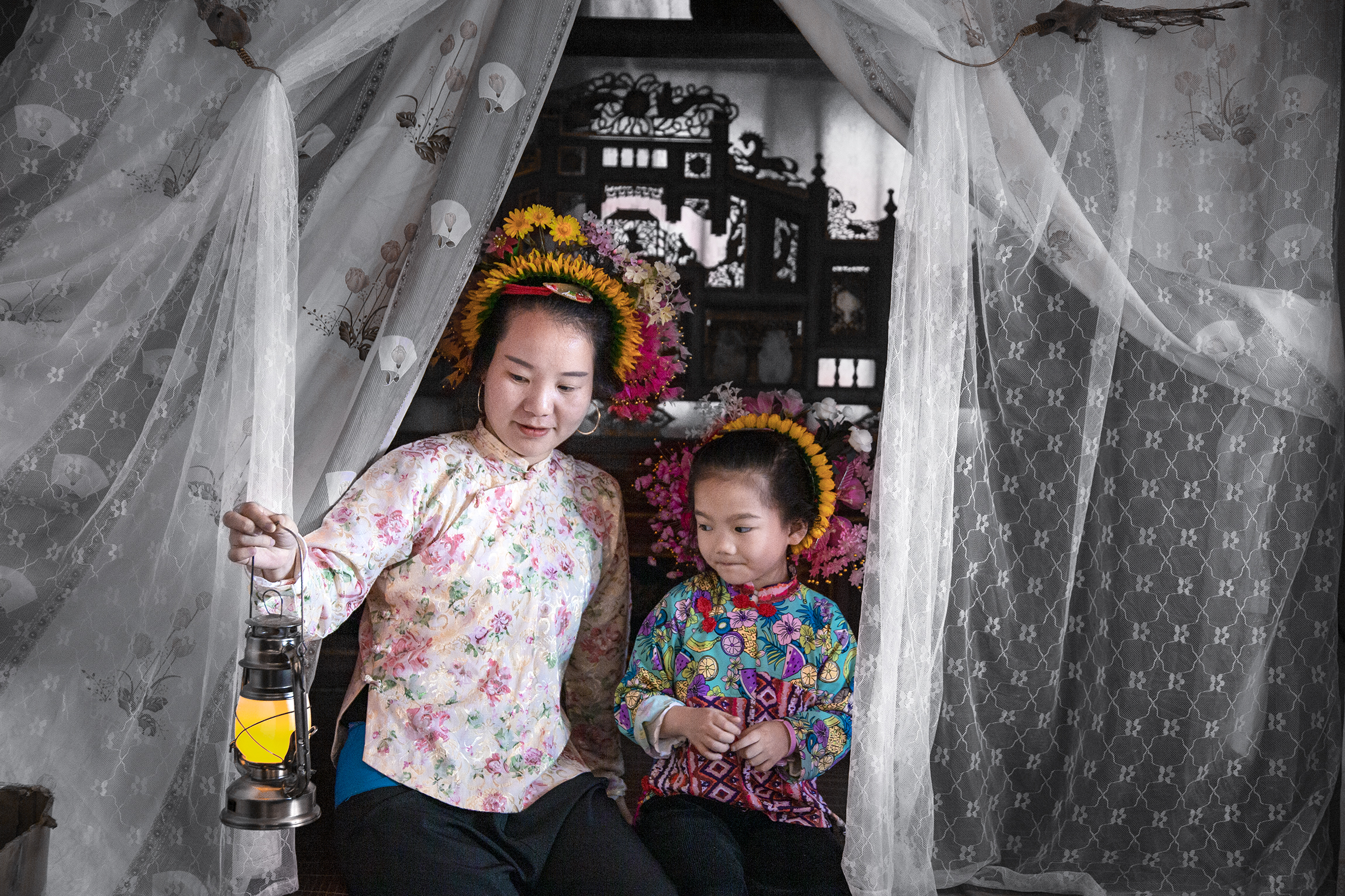 这么小的孩子拿着重重的马灯,其实我很担心灯掉下来砸到她的。