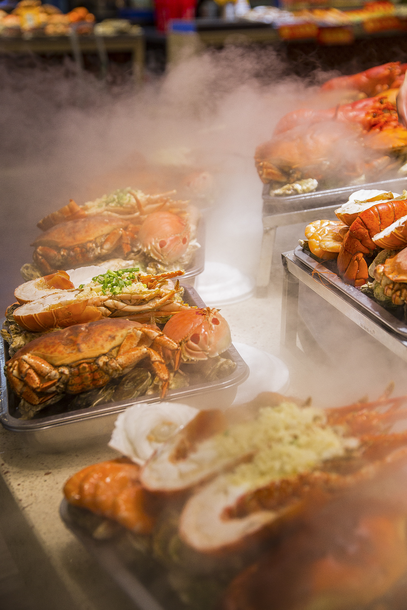 这些是真实的海鲜,不是假的,中山路步行街内,如果你看好那个就点那个,老板一会就会把它们蒸了端给你。