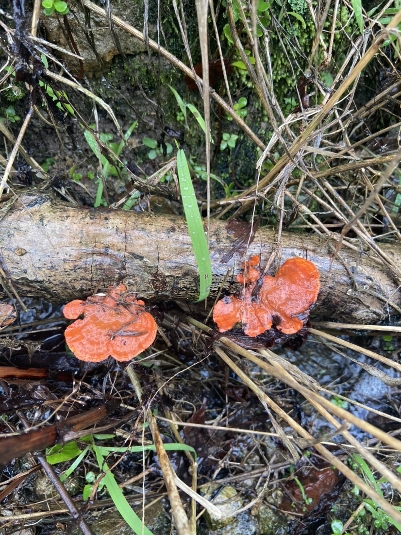 在服务区休息一下之后我们再次出发,很快大巴到了童夏家村,此次徒步起点,我们队员都穿好雨衣,我打开了我的登山杖,一边撑伞一边拿着它,和我有过命的交情,这几年来的徒步爬山时光,一直是这根蓝色登山杖陪着我。在进山的村口,雨越下越大,我们沿着溪流而上,水泥路边上的小溪里,水流越来越大,几只快乐的鸭子出现在我们的视野里,我们都拿出手机或者相机拍照,仿佛现在的自己就是它们一样。