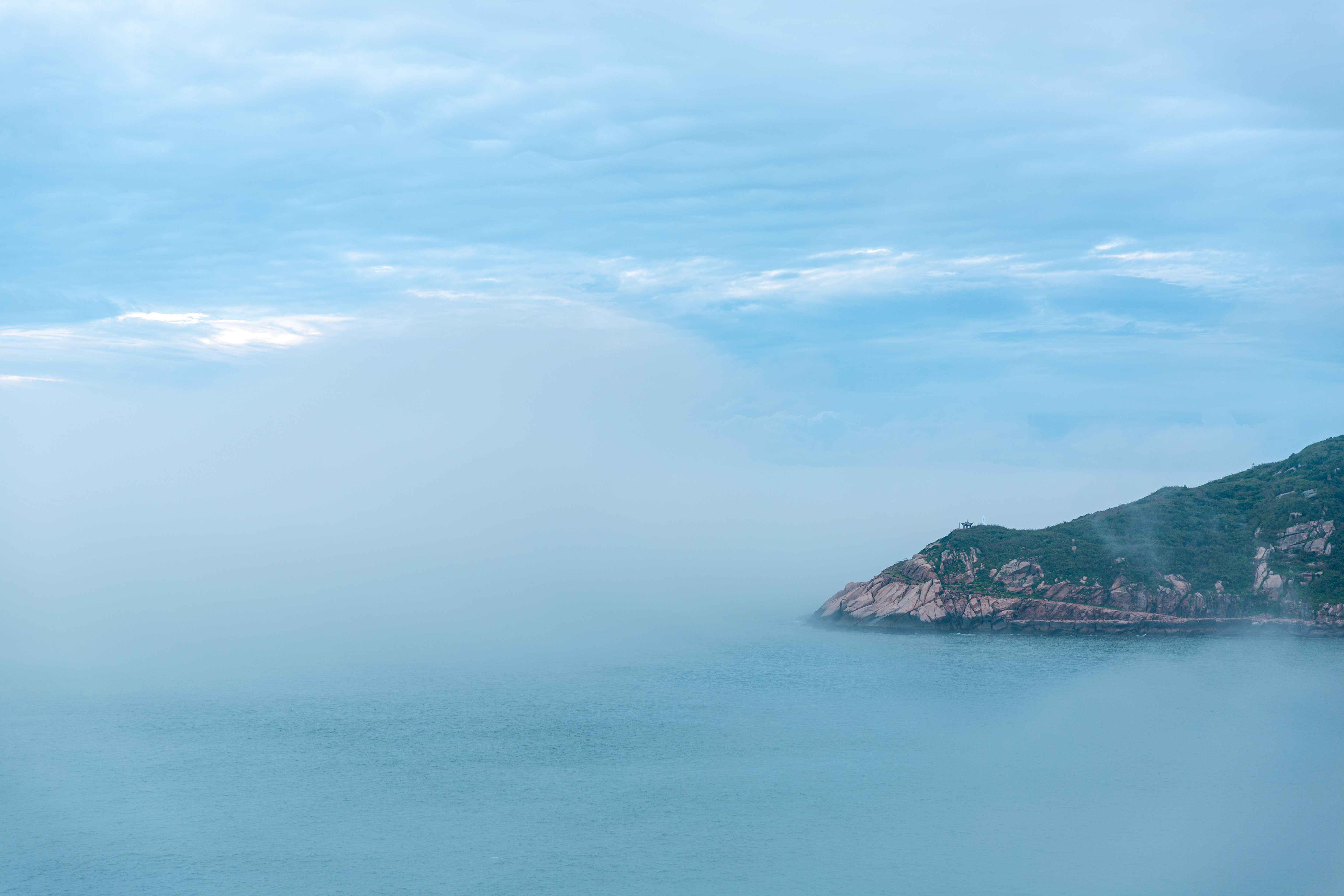 前一天晚上突然下起了暴雨,雷电交加,所幸到第二天早上的时候并未下雨,但是云层非常后,日出的阳光基本没有任何希望,整个日出观景平台完全笼罩在一片云雾之中,追寻第一缕曙光的计划再次泡汤,而且中午开始下起了雨,冒着风雨的危险出海前往庙子湖岛,一路的阴雨使得晚上的日落也成为了泡影,似乎这一路都与阳光无缘