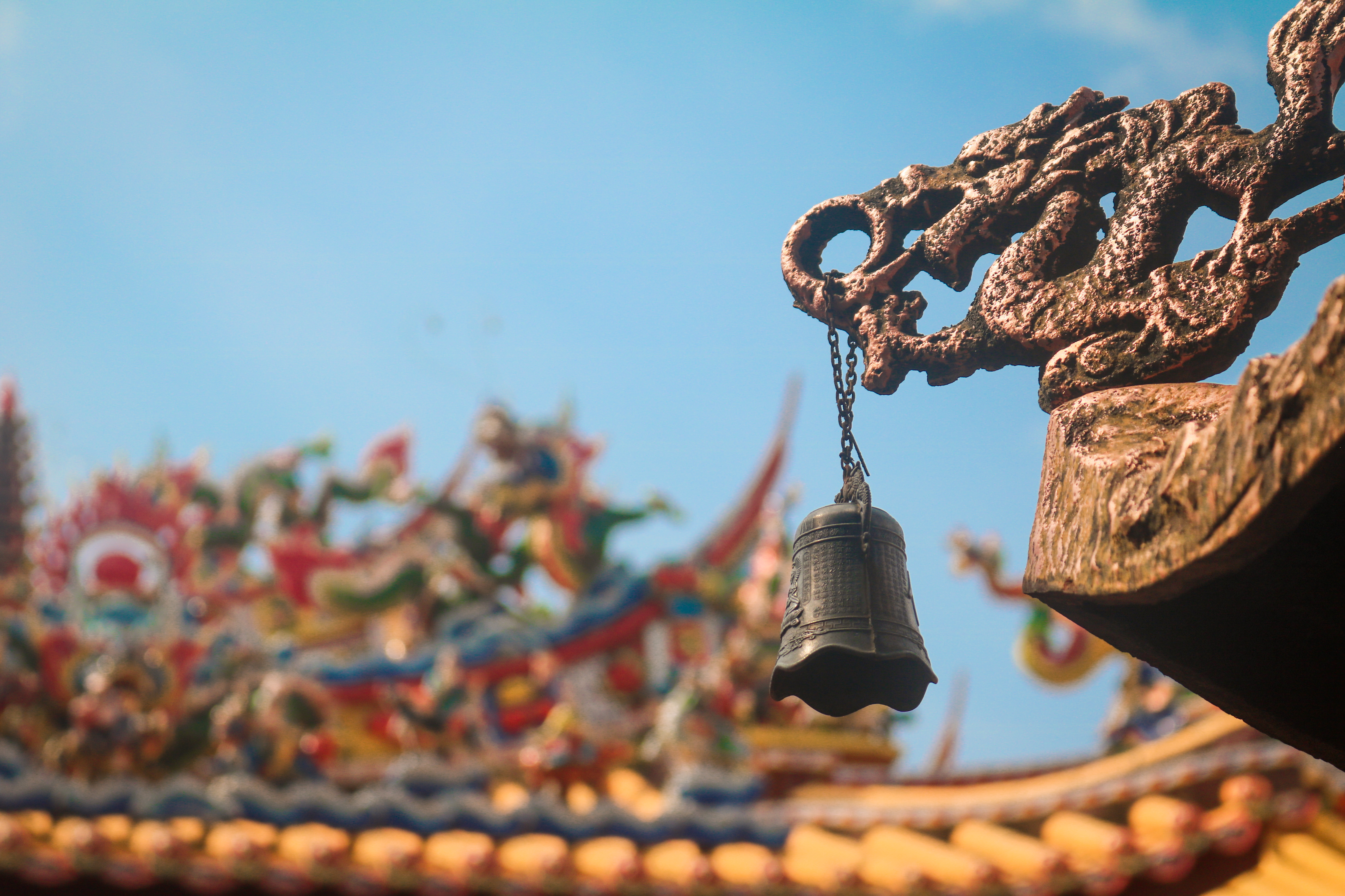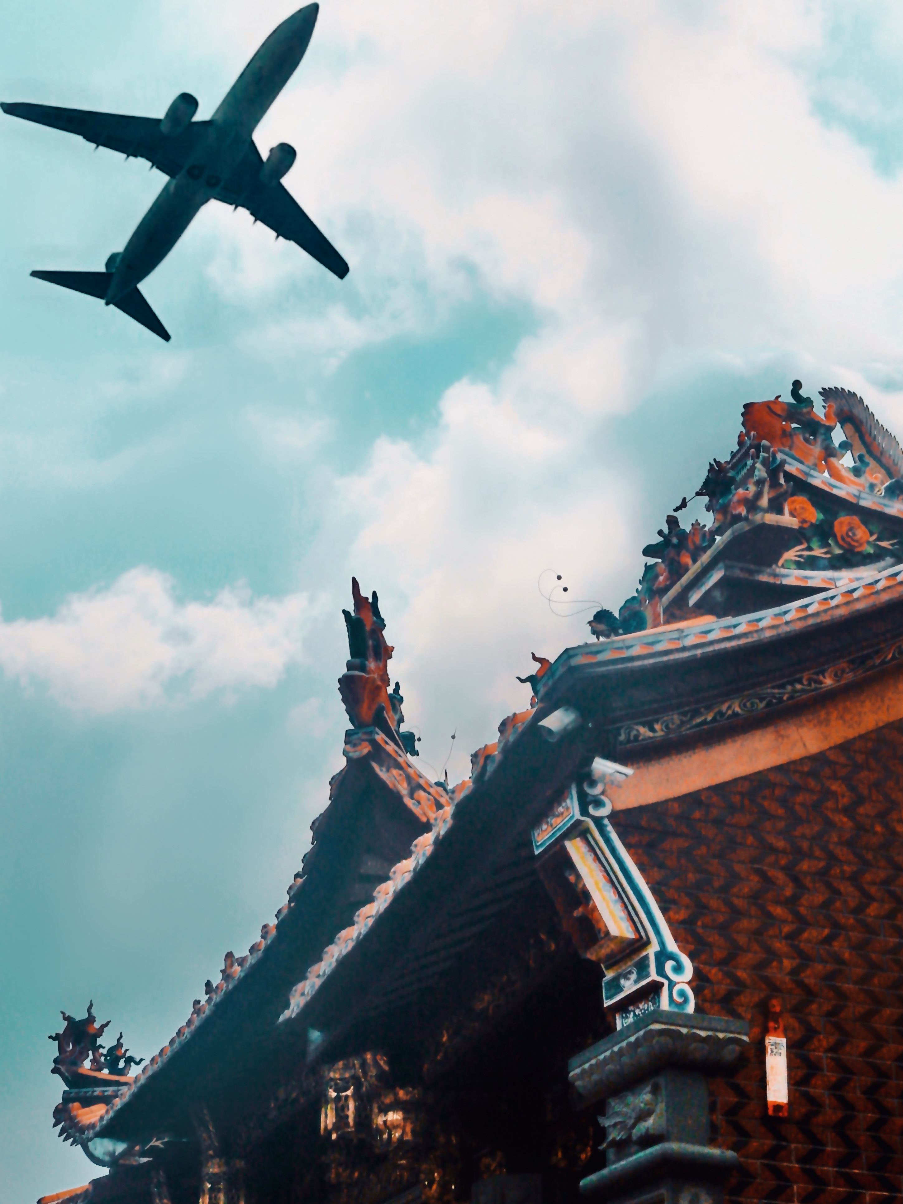 我们在烈日下等待飞机时,热出了一身汗,清水宫门口放着很亲切的闽南歌,刚好是我能跟着唱的曲子,我一边哼着歌一边举着相机等待着。