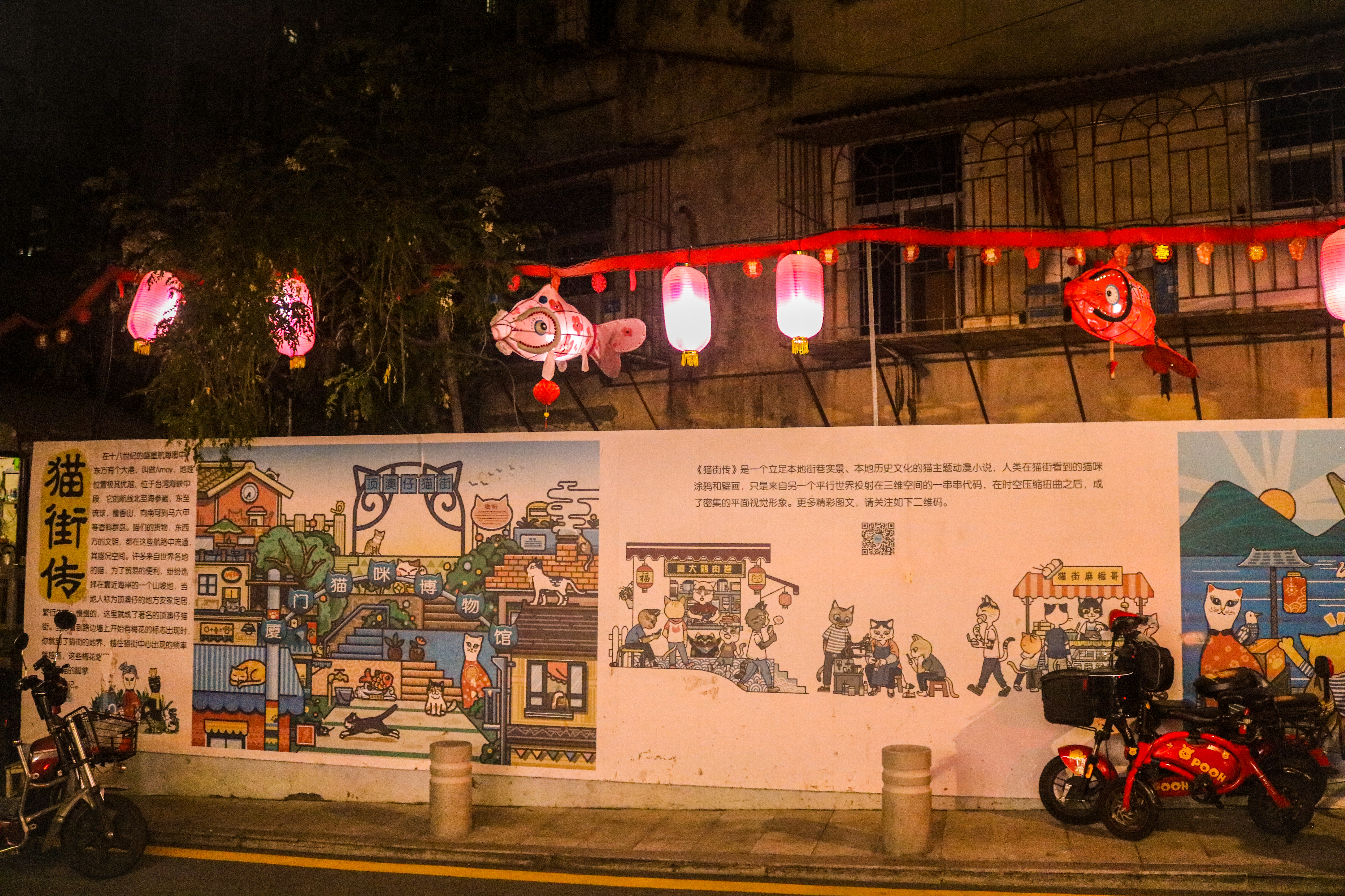 路边的金鱼灯笼好有过节气氛呀,让整个街市氛围特别温暖。