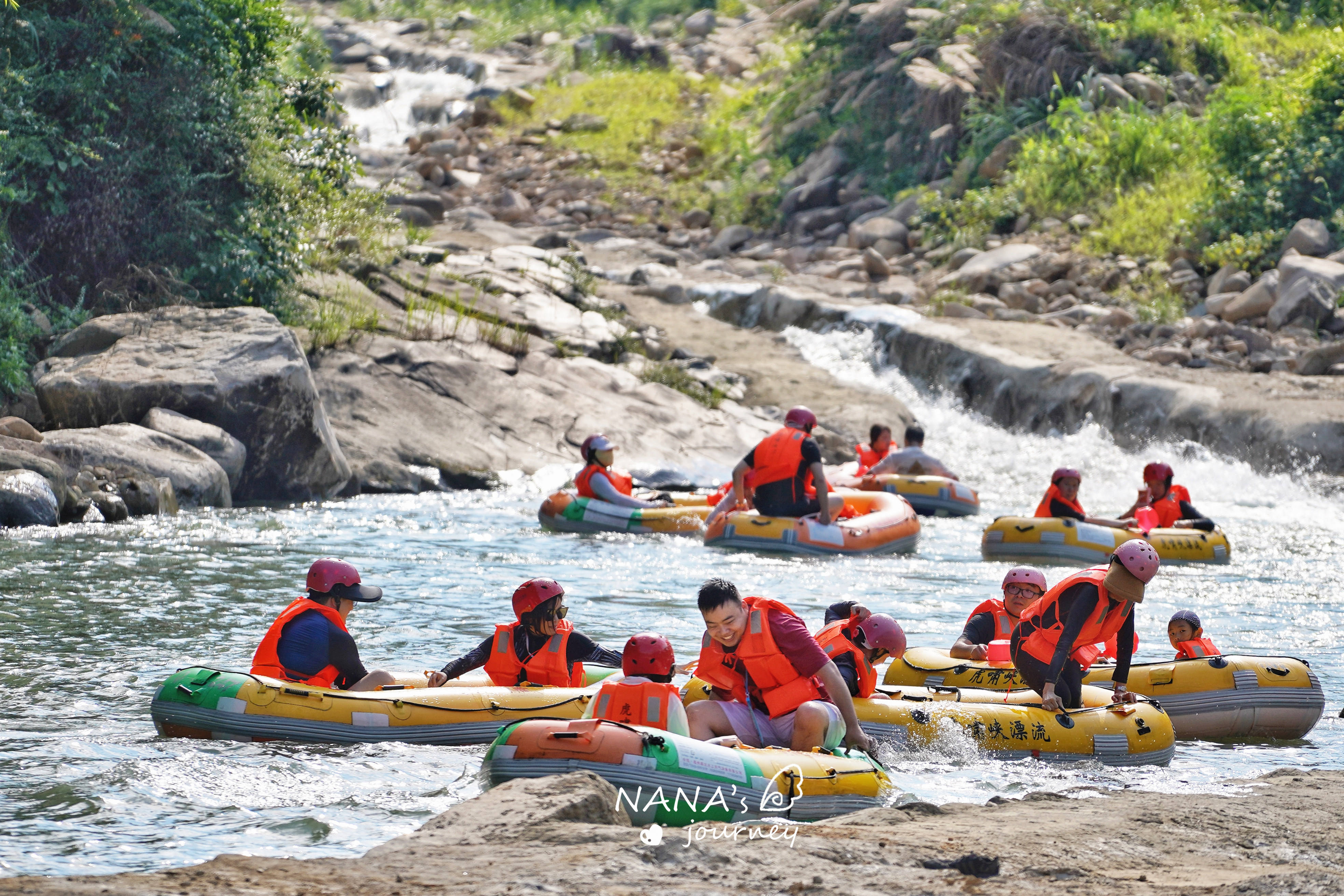 下午虎啸峡漂流准时开始,在出发上车的地方记得一定要领好自己的救身衣和安全帽哦~这是最重要的装备。