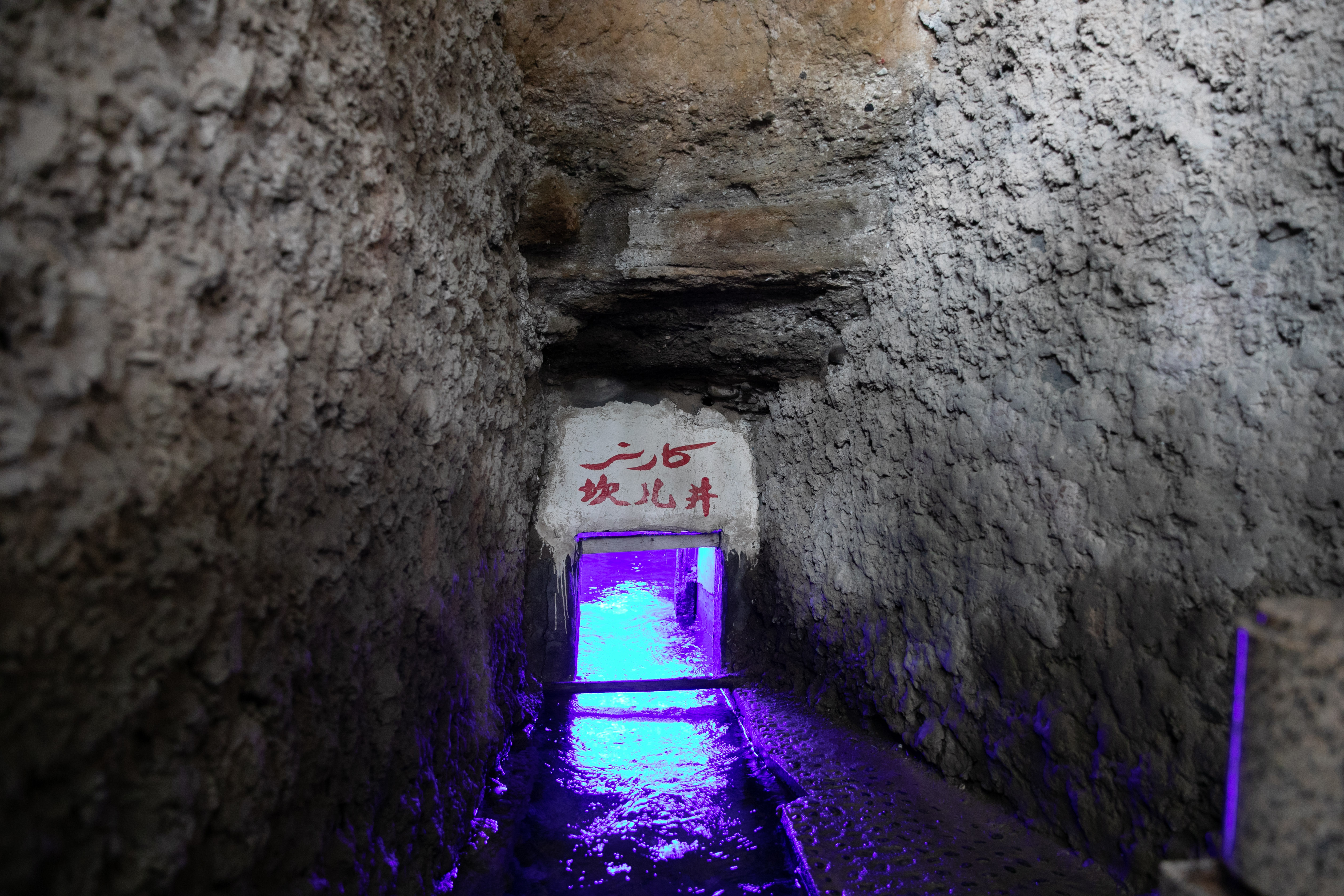 从博物馆可以直接下到坎儿井暗渠,从旋转斜坡走下去,参观离地面10米深的坎儿井暗渠部分,地下的坎儿井凉爽,丝毫感觉不到是在火洲吐鲁番,在坎儿井暗渠内冬暖夏凉,非常舒服,这里展示了米依木·巴依坎儿井暗渠、四眼竖井、出水口等体验点。在这里可以真实快速了解米依木·巴依坎儿井的基本信息。