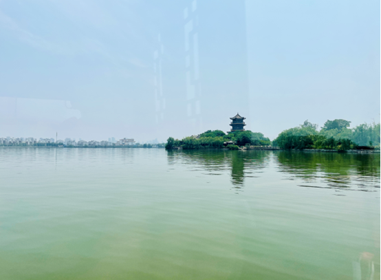 参观完了孔繁森同志纪念馆后, 我们就坐船开始了游览东昌湖。 经常说“远离城市的喧嚣”, 享受片刻的清净,碧水蓝天,有钱人的生活也不过如此吧。