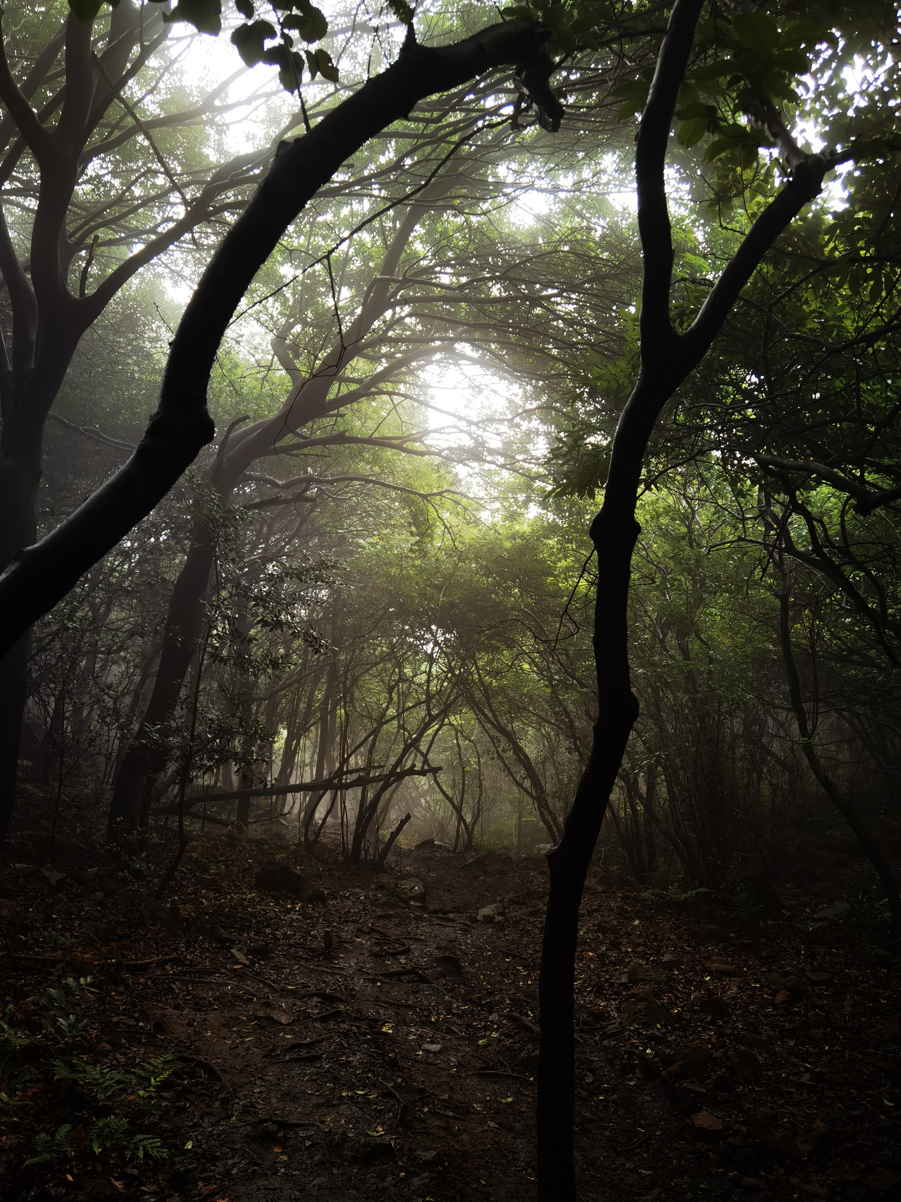 错离山寺,行将山石。错开古寺的道路,进入山间石道,阴蒙的天,愈发闷热,这是下车后第二次期待下雨。灵岩山罢,开始下坡,滑倒的灵树,从这里开始。两步一叮,三步一嘱,还是没能逃过,雨后的山石对同伴臀部的留恋,若这里的山神是东北人,或早已唱起打出溜滑了。