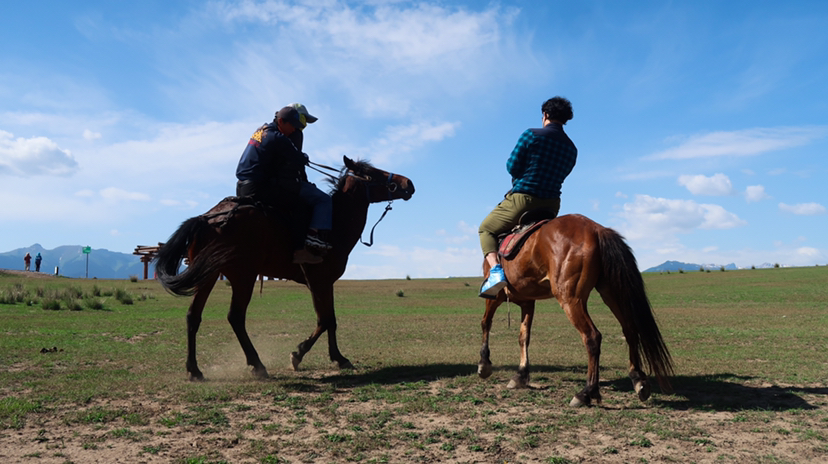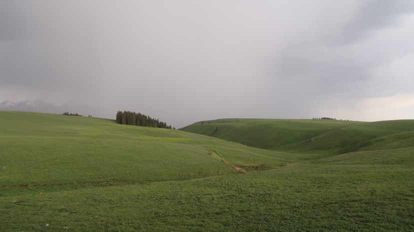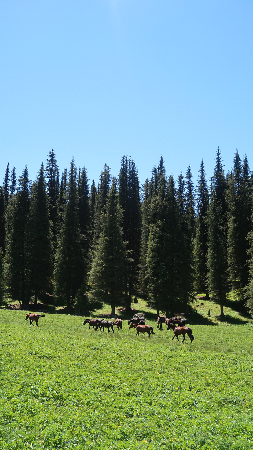 “喀拉峻”是哈萨克语,意思是“山脊上的莽原”。喀拉峻山是一条东西向绵延的山岭,它的两侧是沟壑梳状密布的山地,山原起伏跌宕,生长着茂密的原始云杉林。喀拉峻草原这里是典型的“五花草甸”草原,生长有上百种优质牧草。