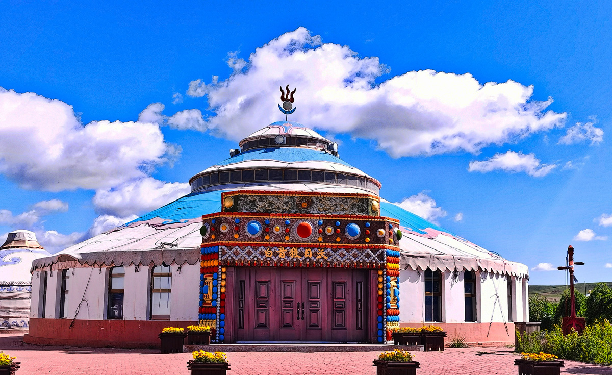后面还有民俗大戏台,我们在那里观赏了一会儿蒙族歌舞表演呢。