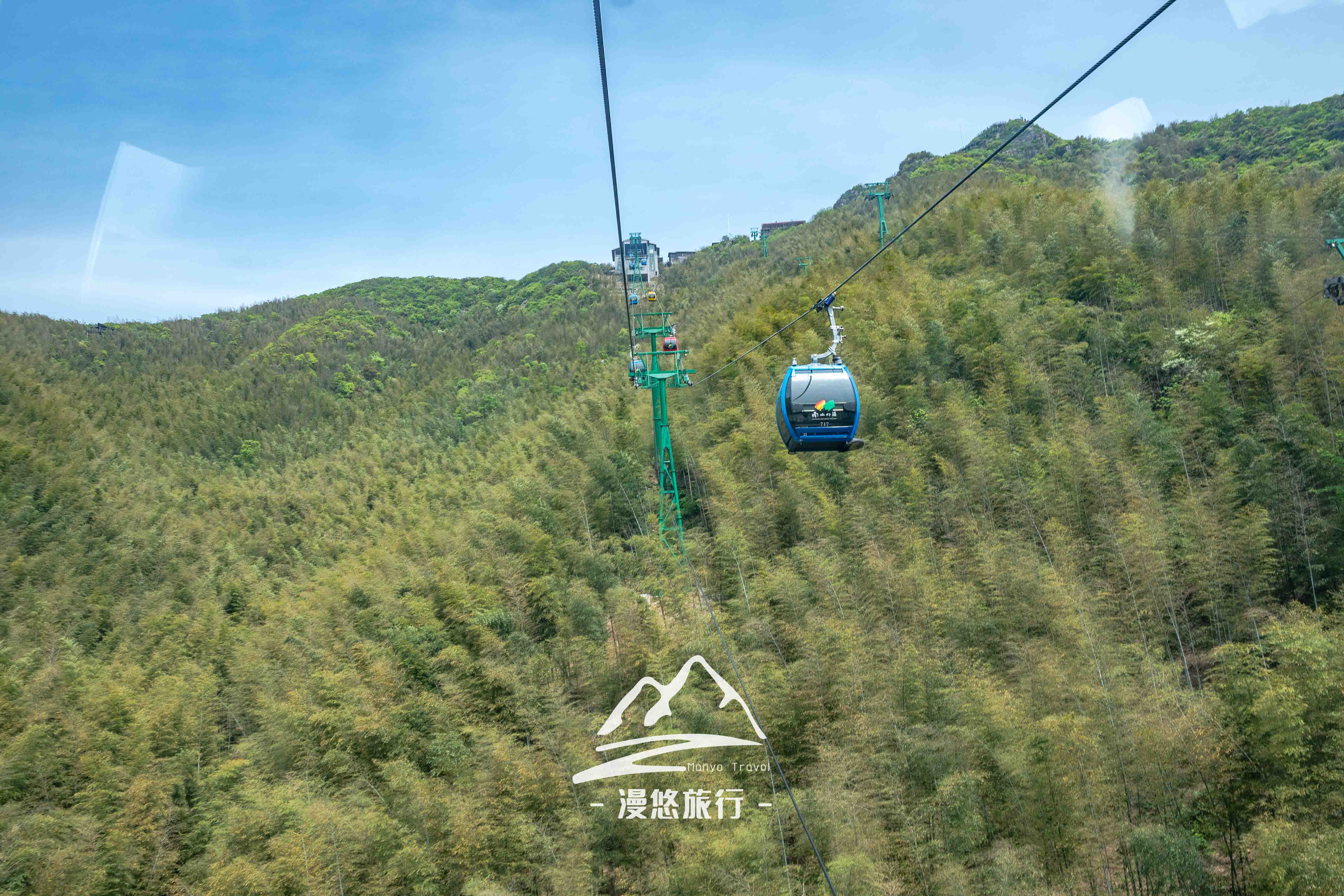 从镜湖这里就不用步行了,而是乘坐红色小火车继续往索道方向前进。坐进复古可爱的的小火车里,看着密密麻麻的竹林不停后退,阳光就在细缝里跳着华尔兹,这画面太美,这体验也实在太拉风了。