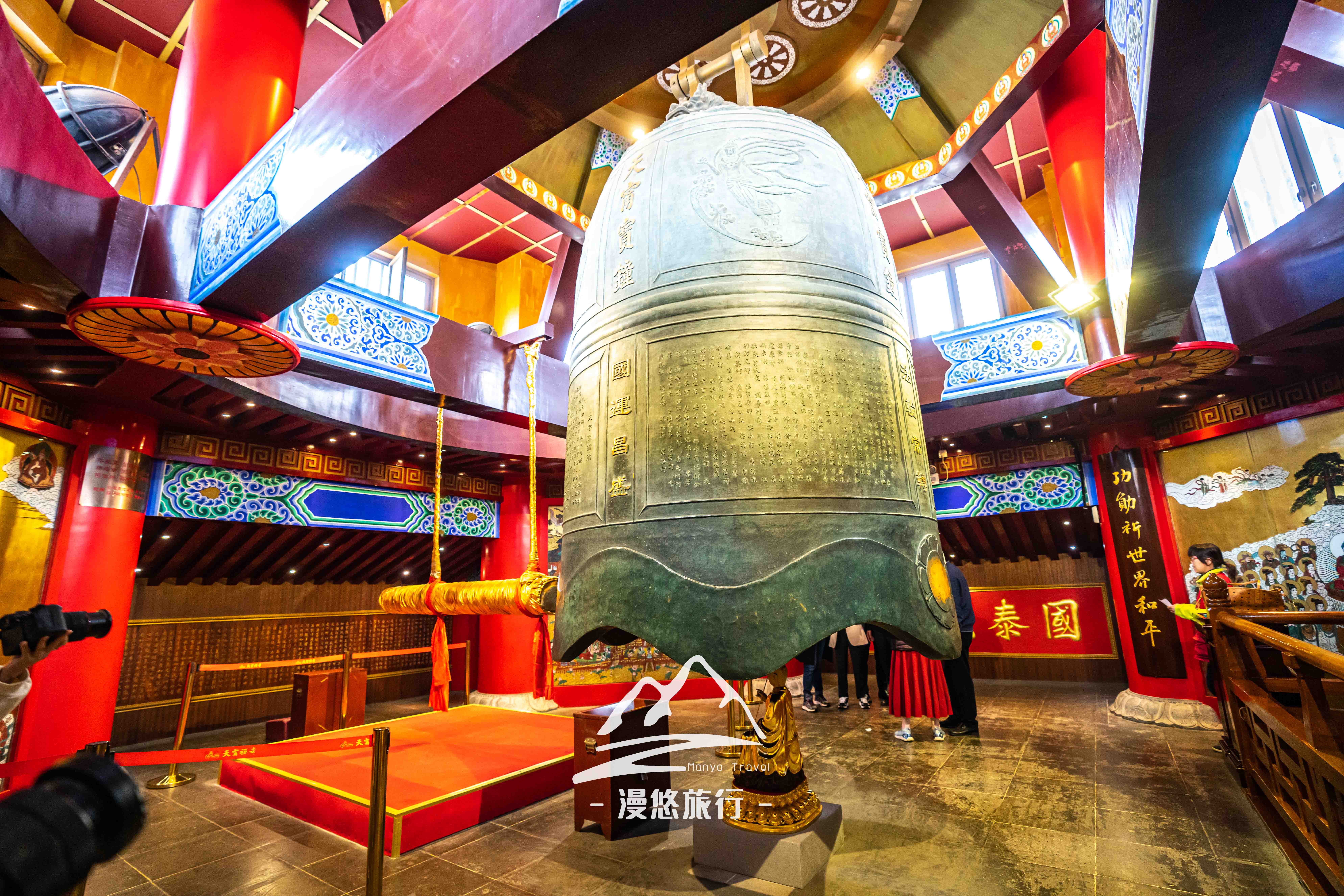 第三,这里有一口15吨重的塔,悬挂在宝塔13层,高度118米,如此之高的悬挂高度,还是首例。这口钟很重很重,敲击的话,需要几个成年人一起敲才行。提个醒,这钟的声音浑厚有力,仿佛可以穿透整个宝塔,建议敲的时候,一定要捂住耳朵。