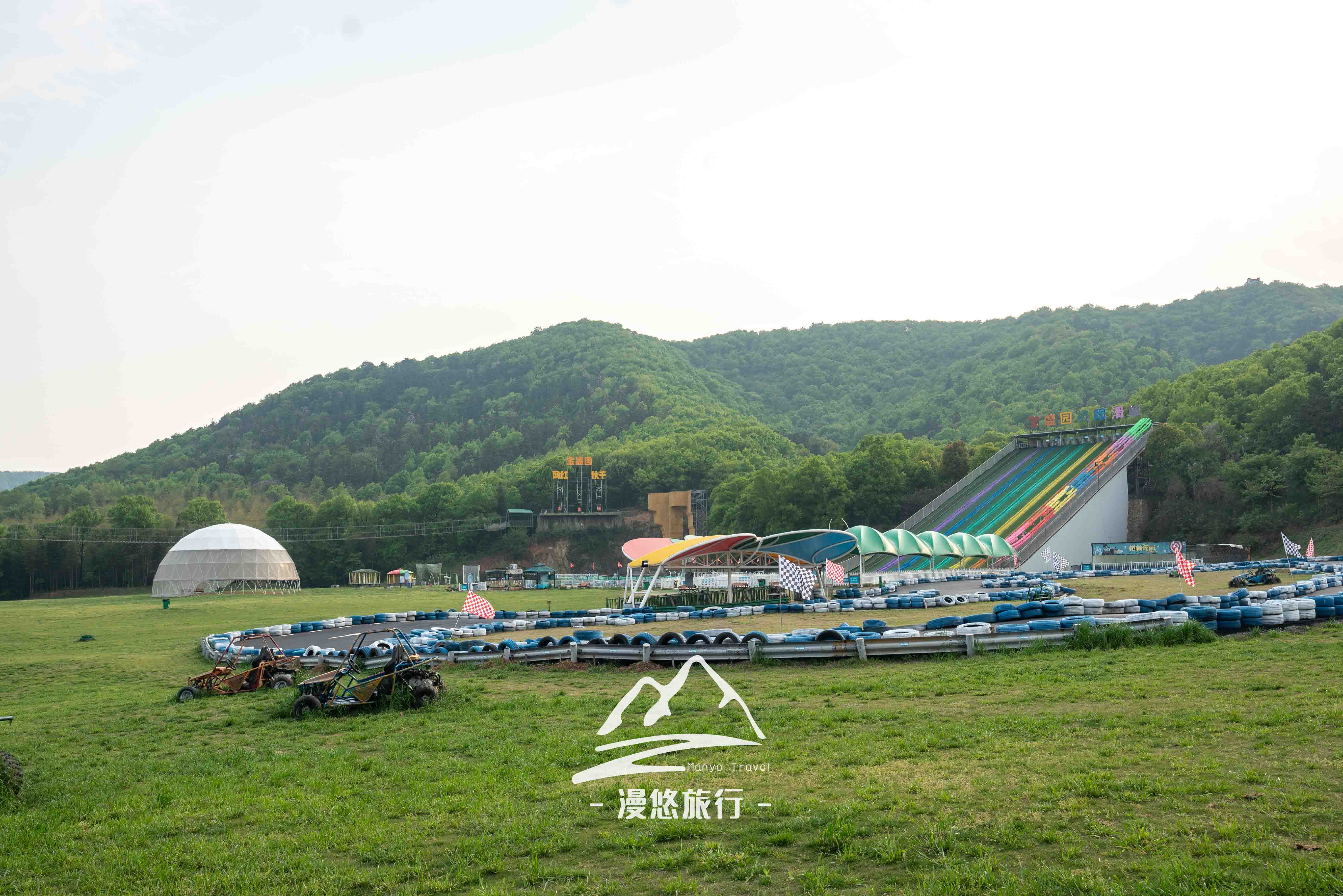 坐着观光车在园区里逛了一大圈,发现这里有悬崖秋千、天空步道、极限滑草、丛林漂流等近四十项山野游乐项目,可惜当日我们来得太晚了,所有项目都停止了营业,大大的遗憾。