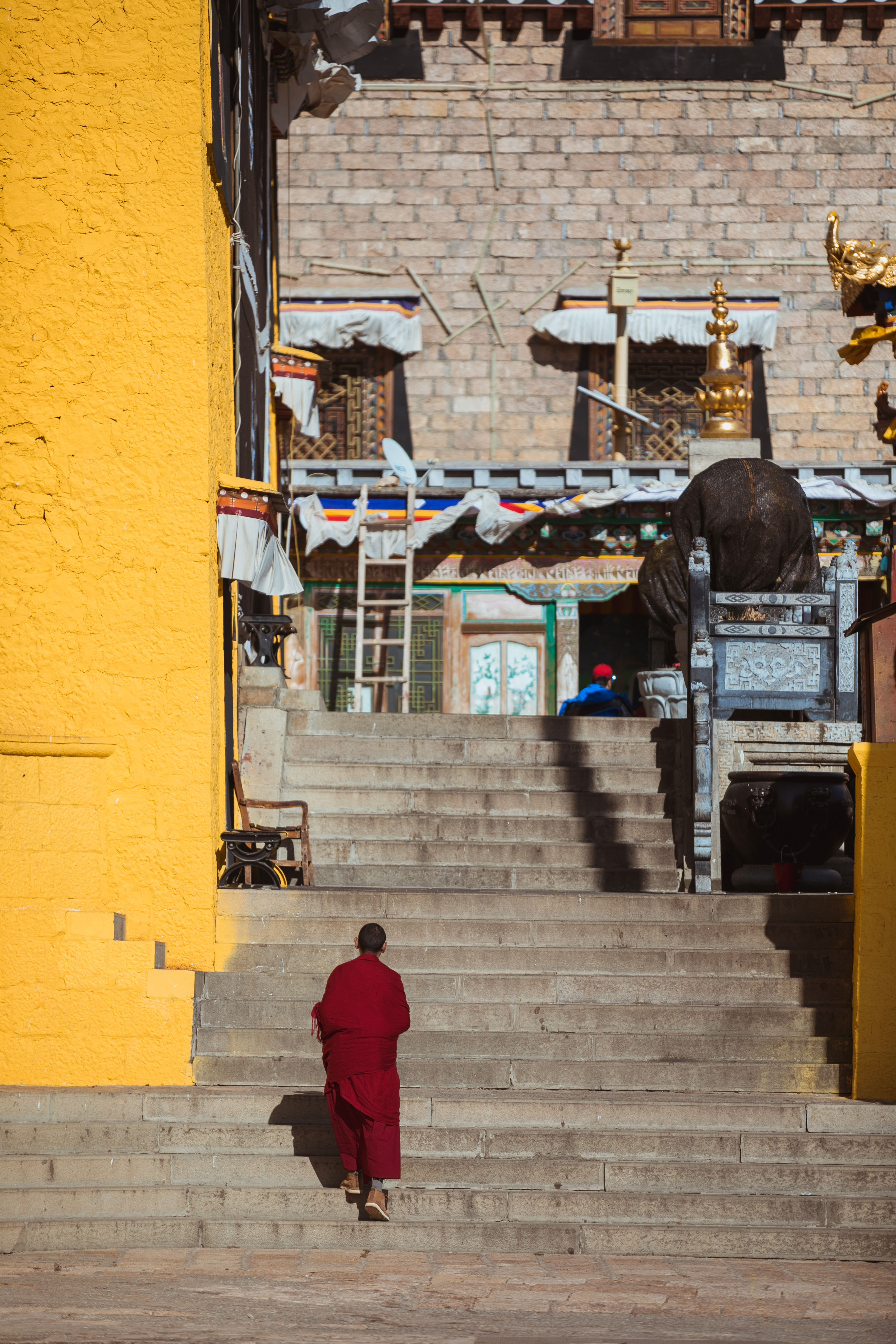 远处看阳光下的松赞林寺,给人一种震撼,给人一种信仰,抹平心底的不安和浮躁,给人安静和力量。
