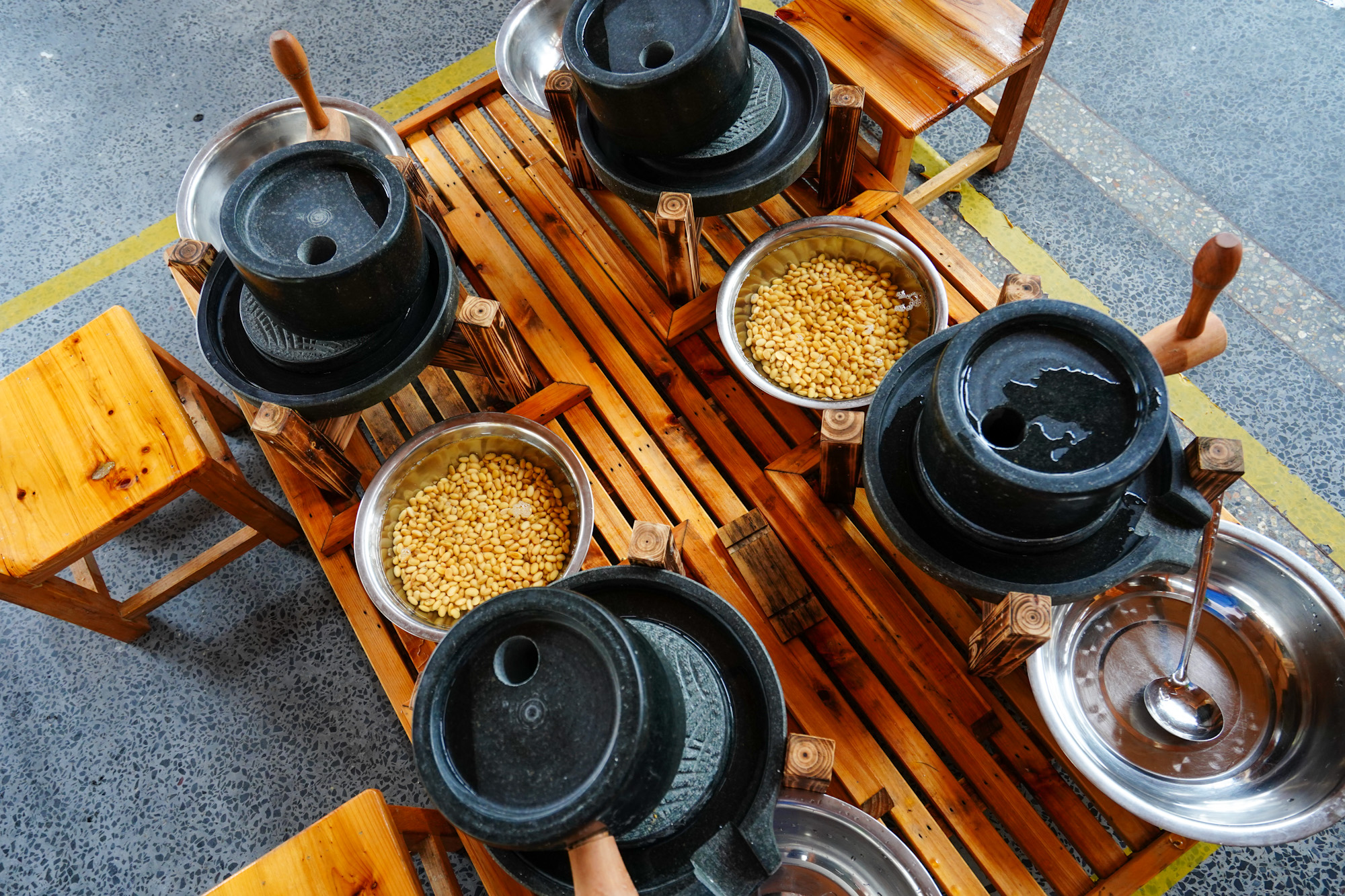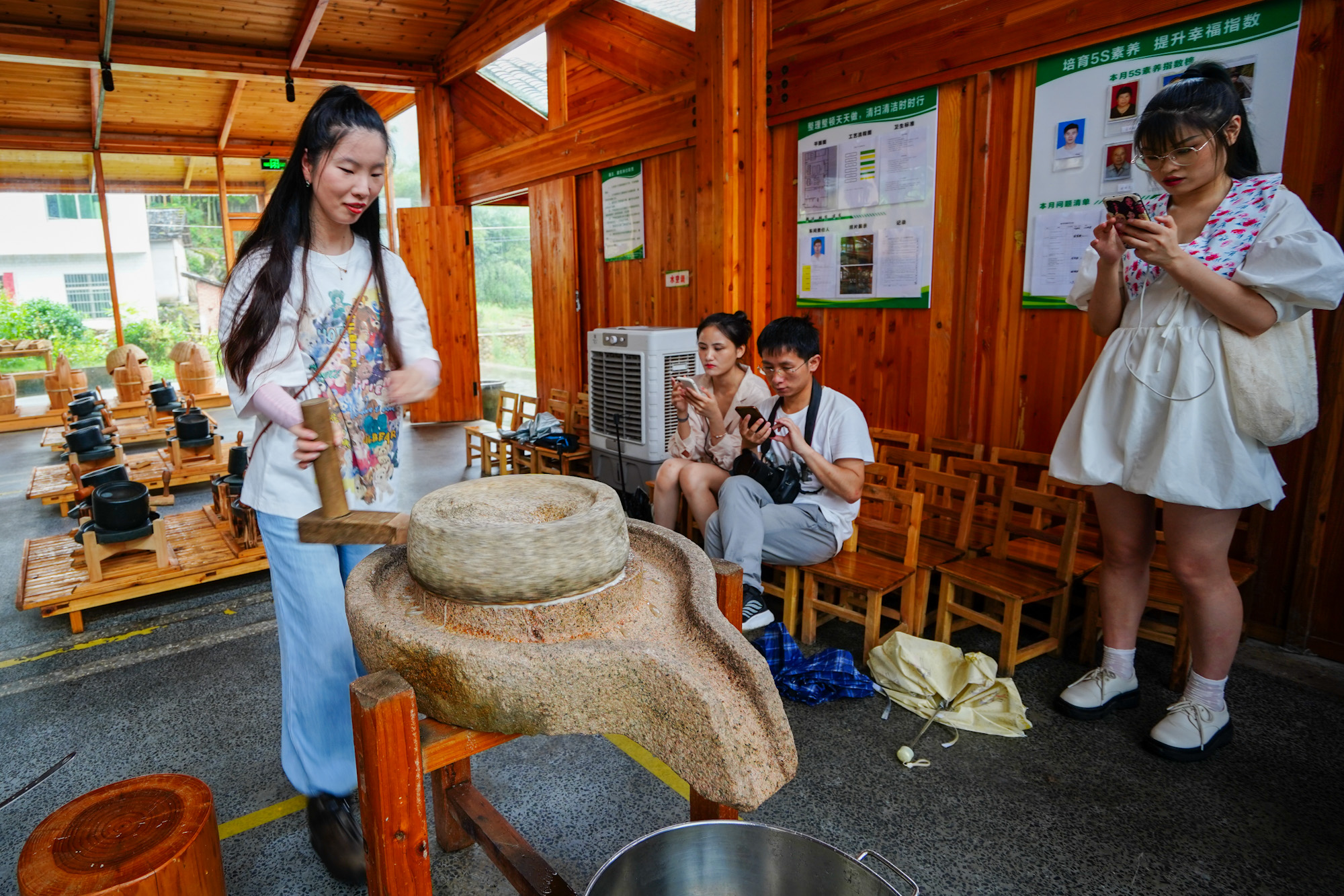 其实可以说这儿是一个体验豆制品制作的工坊,游客在这儿可以自己磨豆浆,自己炸油豆腐等等,这儿也提供餐饮,可以直接拿自己制作的炒菜吃。