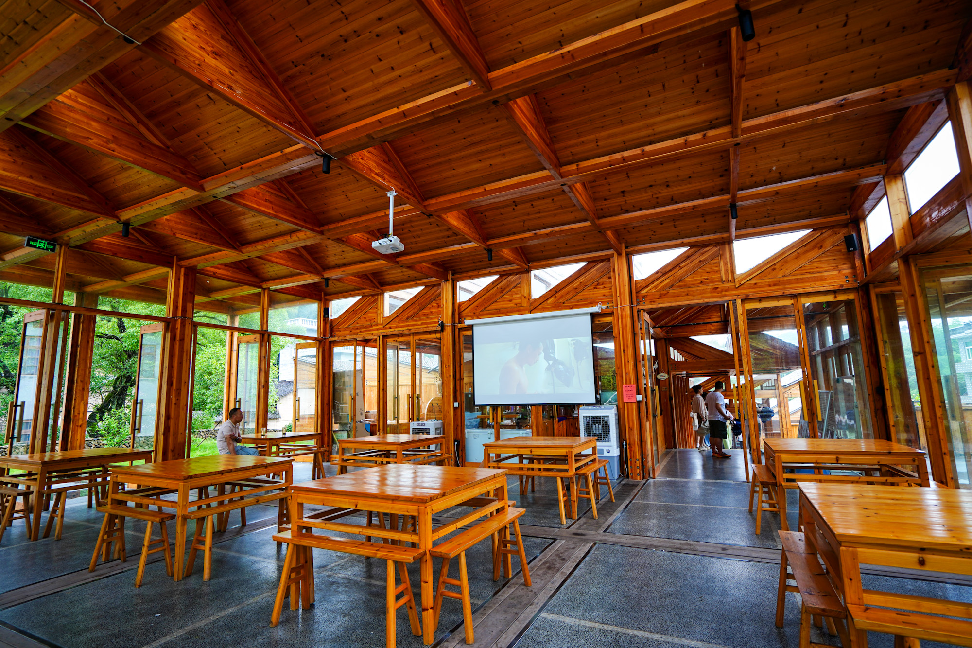 民宿前台在一个小屋子里,装修非常现在,也很精致,餐厅也是经过设计的,二楼的包厢里有天窗,打卡拍照都是绝佳。