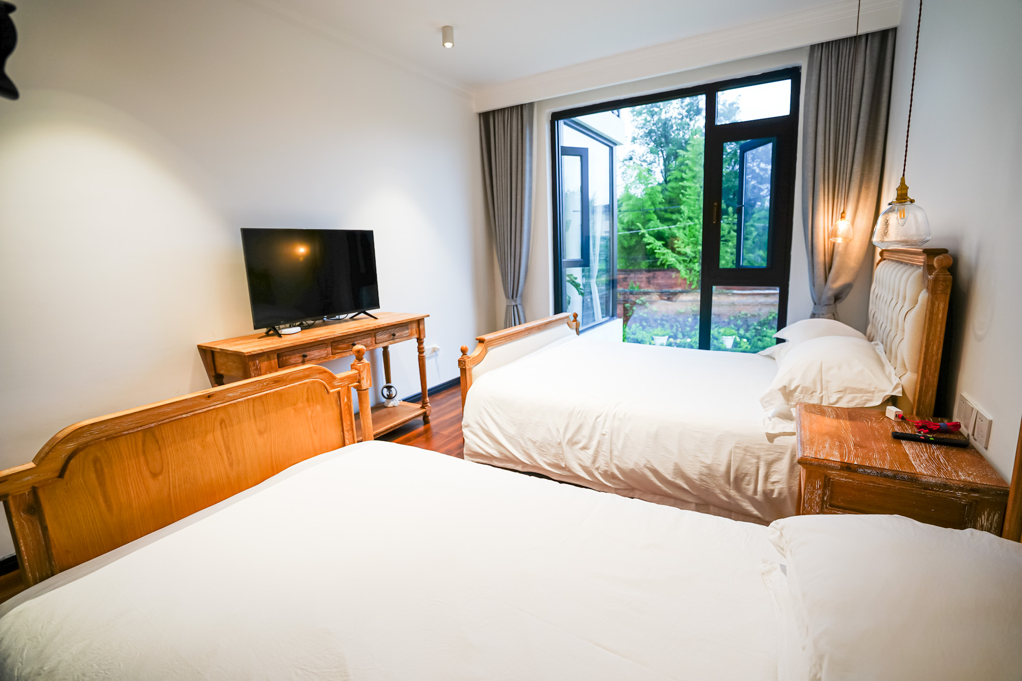 民宿是管家式服务,行李也有专人拿取,淳朴而又善良,办理入住后管家就会将客人带入客房,打开窗帘就能看到蓝天白云绿水青山,非常养眼。