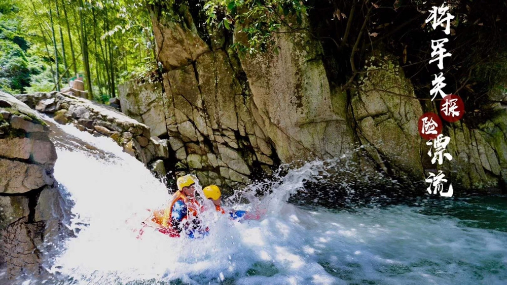 【闯关挑战】将军关漂流以峡谷景观为依托,以南宋关隘文化为内涵,全程设有整整十六大关口挑战,如“将军出关”、“蛟龙入水”、“劈波斩浪”、“驽箭离弦”、“惊涛拍岸”等。