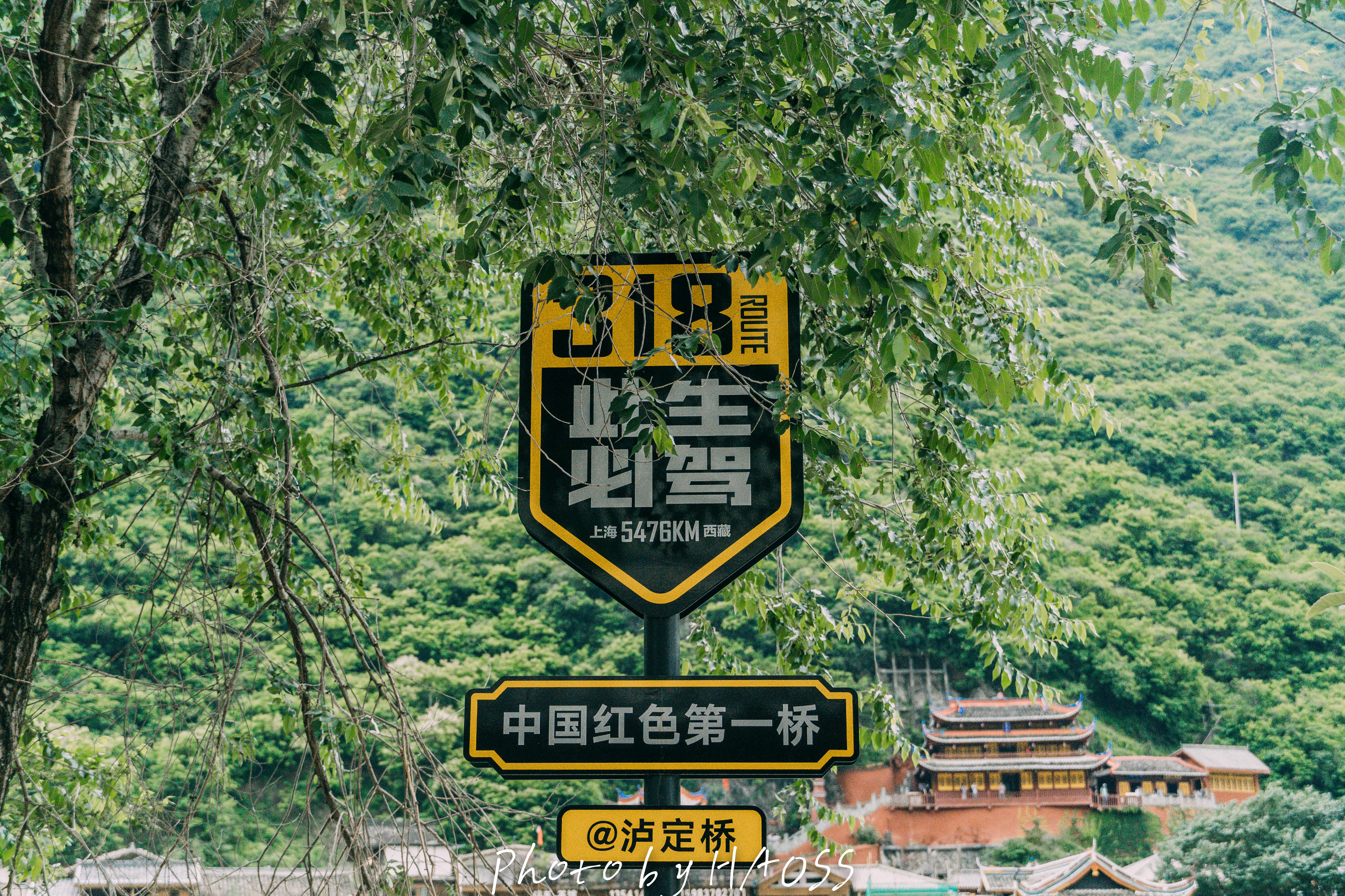 在 泸定 桥边,伫立着这个很多人都会来打卡的“318此生必驾”的路牌。