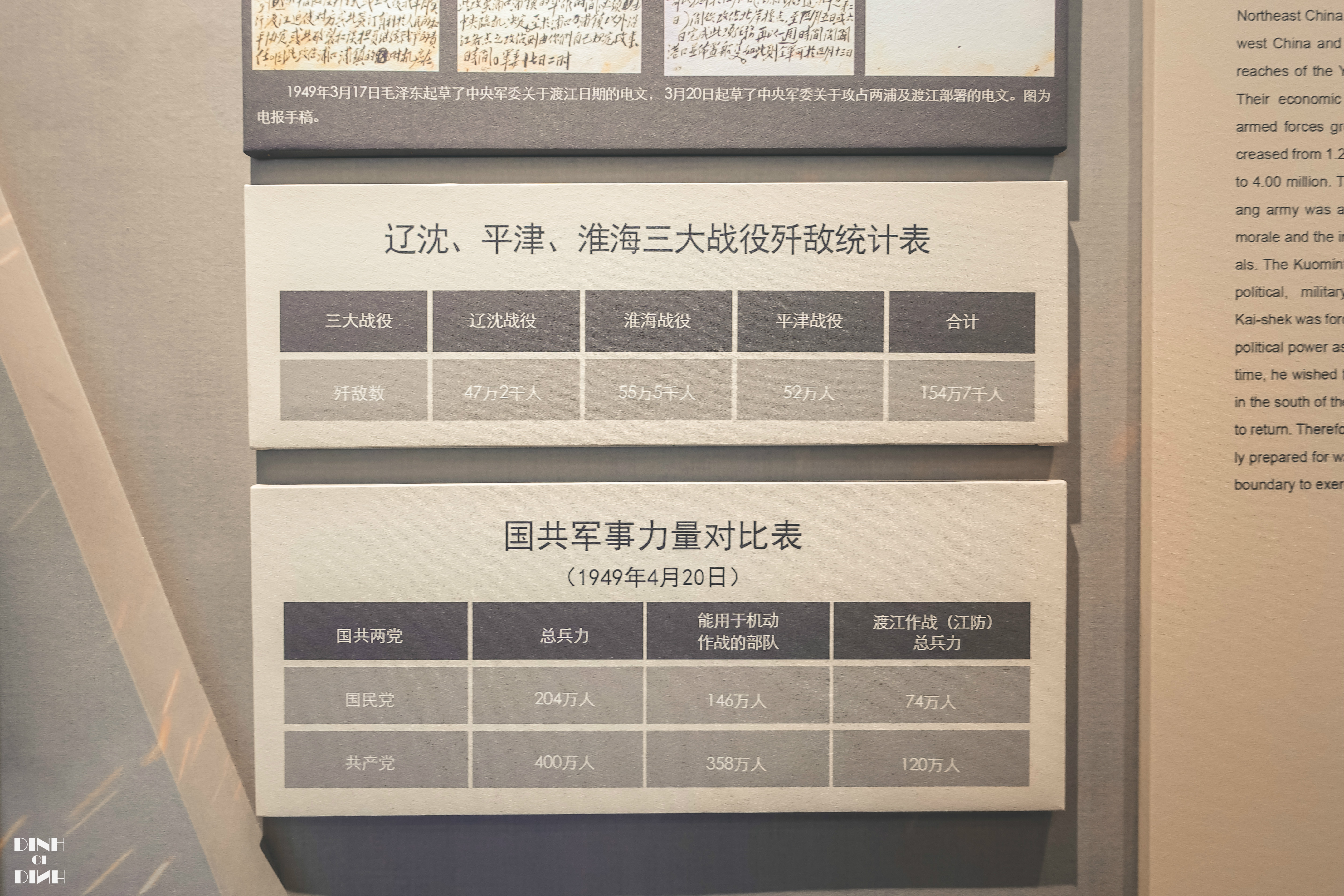 纪念馆以文物、图片以及声、光、电等生动地反映了渡江的整个过程及百万雄狮渡江的壮阔场面,生动地展示了军民团结、决胜千里的丰功伟绩,讴歌了人民战士前仆后继、奋不顾身的英勇精神,形象地再现了解放战争史上一次大规模决战的光辉历程。