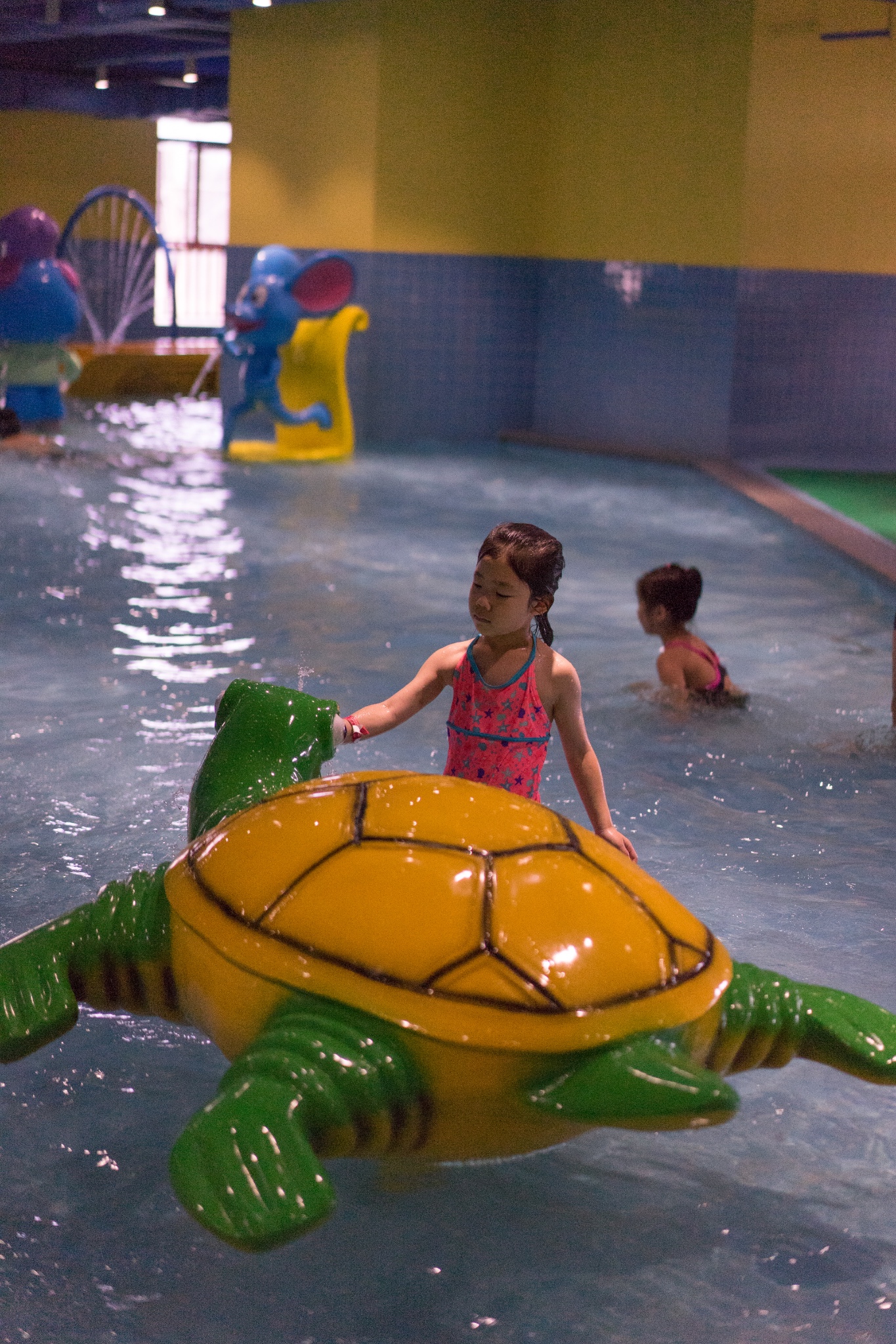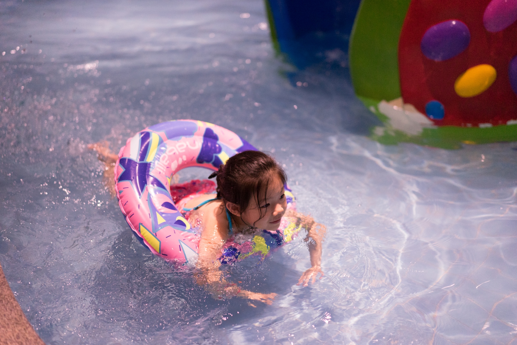 3楼4楼打通了,是整个乐园的核心区域,恒温水上乐园,换好泳衣,多多喜欢挑战难度高的项目,螺旋滑道符合她的要求。每个滑道,都有一名工作人员,指导孩子如何正确的滑行,避免孩子可能受到的伤害。每个滑道的刺激程度也是不一样的,很多大人从上滑下来,还会发出尖叫声,而有些孩子却非常享受这个乐趣。
