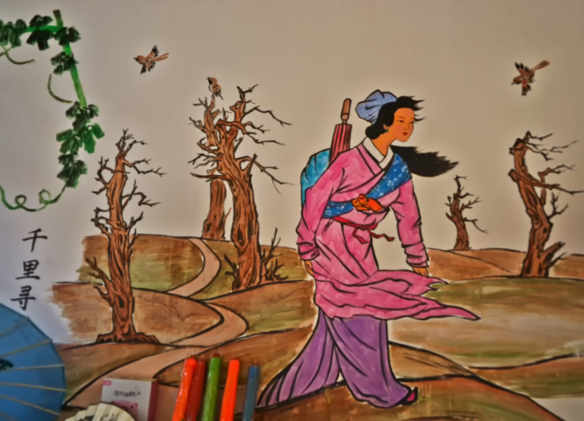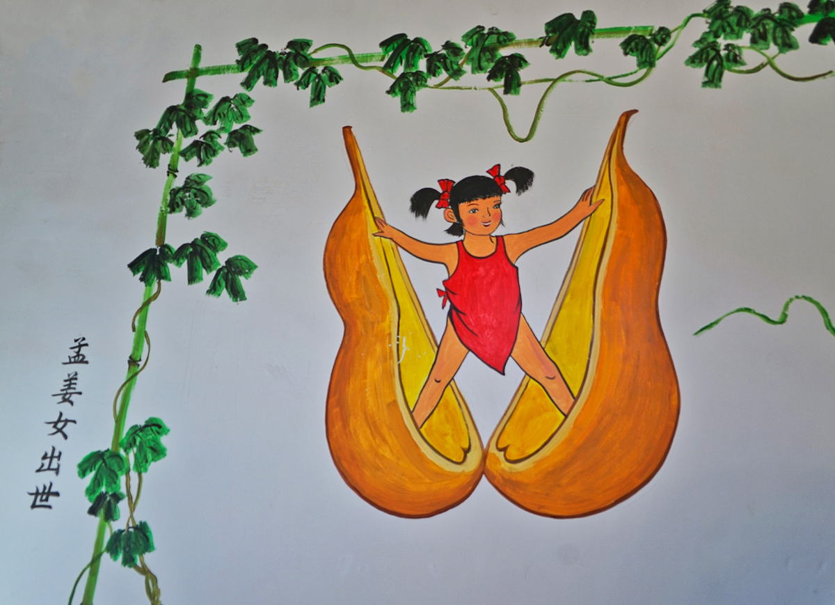 这里有二十个场景壁画与浮雕,讲诉着孟姜女-----从出生到长大成人,喜结连理到官府抓走万喜良,孟姜女哭倒长城投海自尽的故事。