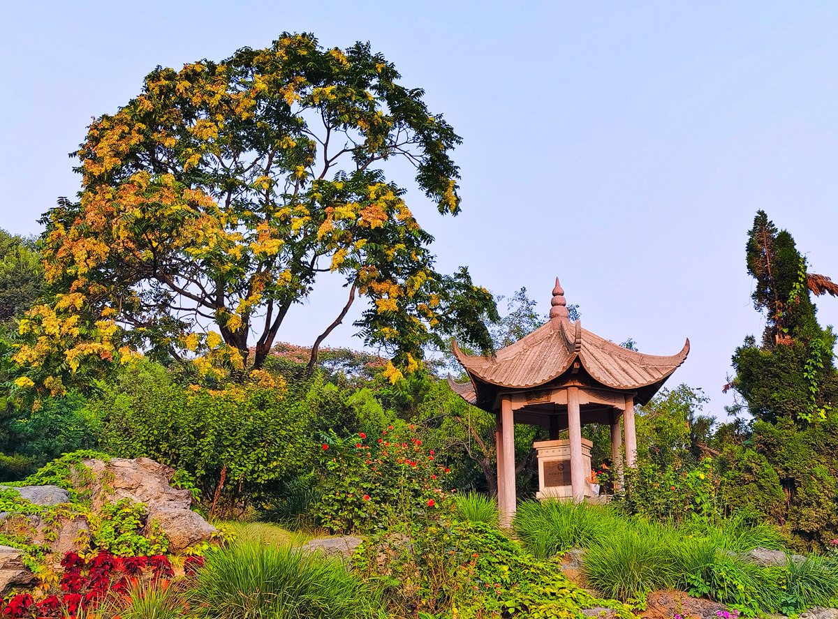 过去常有成群的鸽子或朝暮相聚或窝于石缝之中,因此得名鸽子窝。公园很大,我们边走边欣赏园内景色吧。