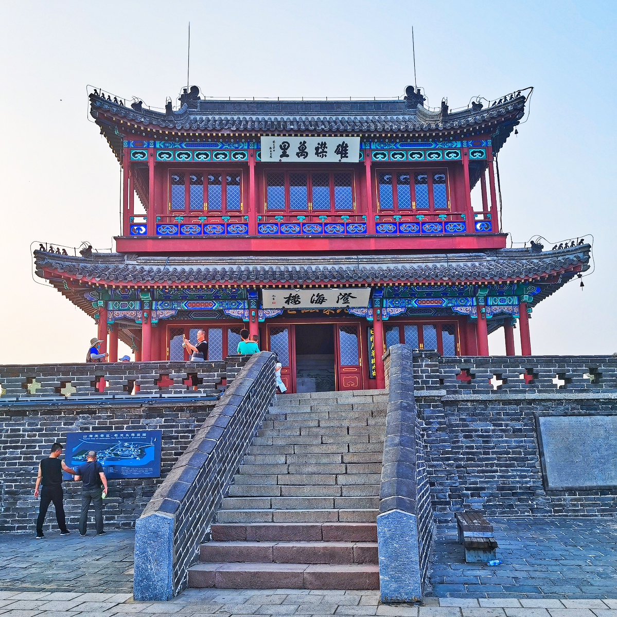 明洪武十四年(1381年)筑城建关设卫。 山海关 城周长约4千米,与长城相连,以城为关,城高14米,厚7米,有四座主要城门,多种防御建筑。包括“天下第一关”箭楼、 靖边 楼、牧营楼、临闾楼、瓮城以及1350延长米的明代平原长城等景观。 1961年 山海关 是全国第一批重点文物保护单位,1987年被列入世界文化遗产名录。