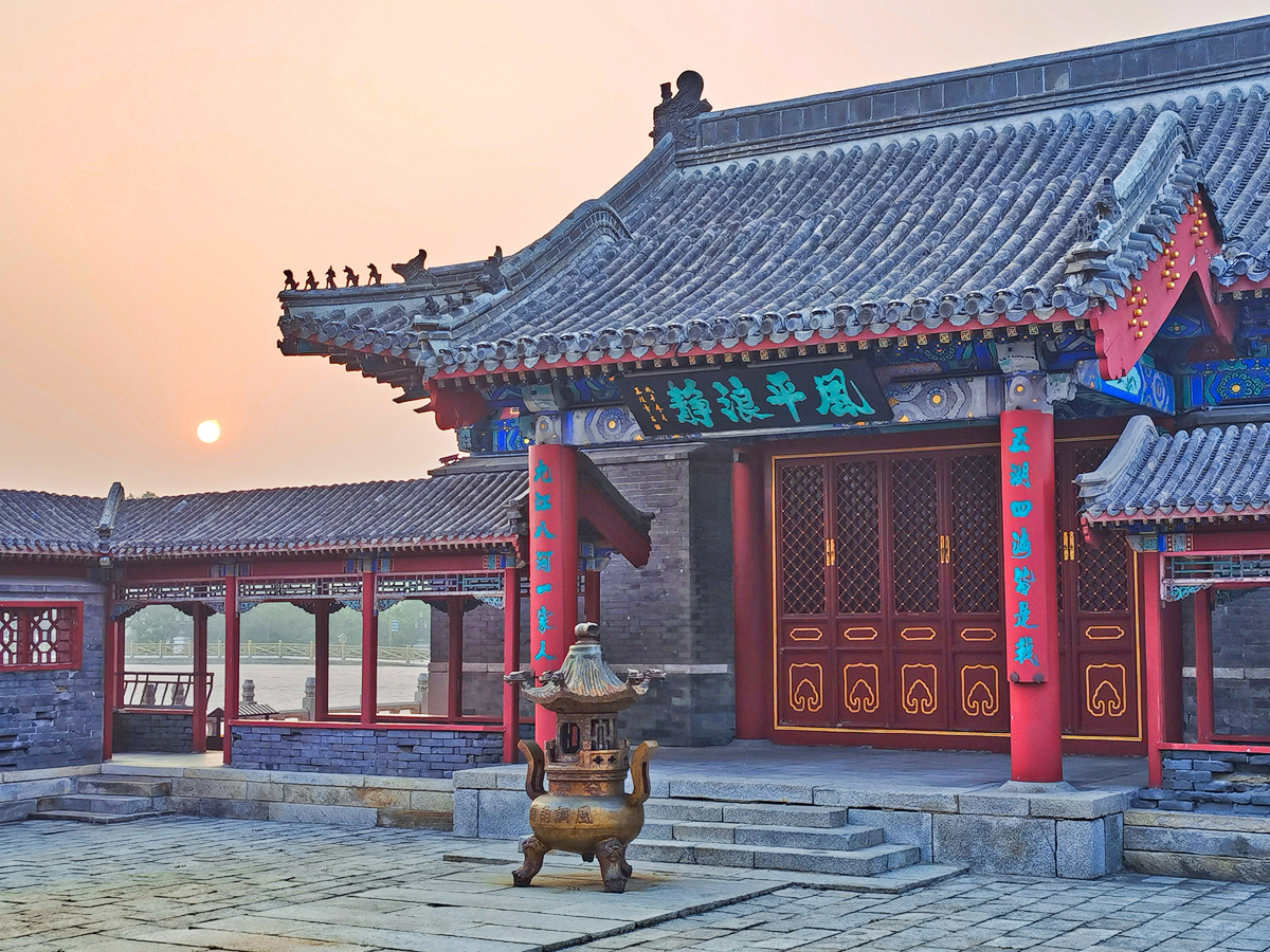 这里是牌楼,南北两面各有两个大字:“ 安澜 ”,“伏波 ”------让大 海安 静,海不扬波,点明了整个“海神庙 ”的主题。殿前牌楼雕梁画栋,海浪的声音似乎是从历史隧道中穿越而来,带点沧桑的味道。