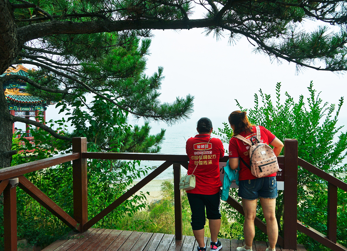 海边建有“浴日亭”,其匾额为严济慈先生所写。廊中彩绘雕梁画柱,栩栩如生。