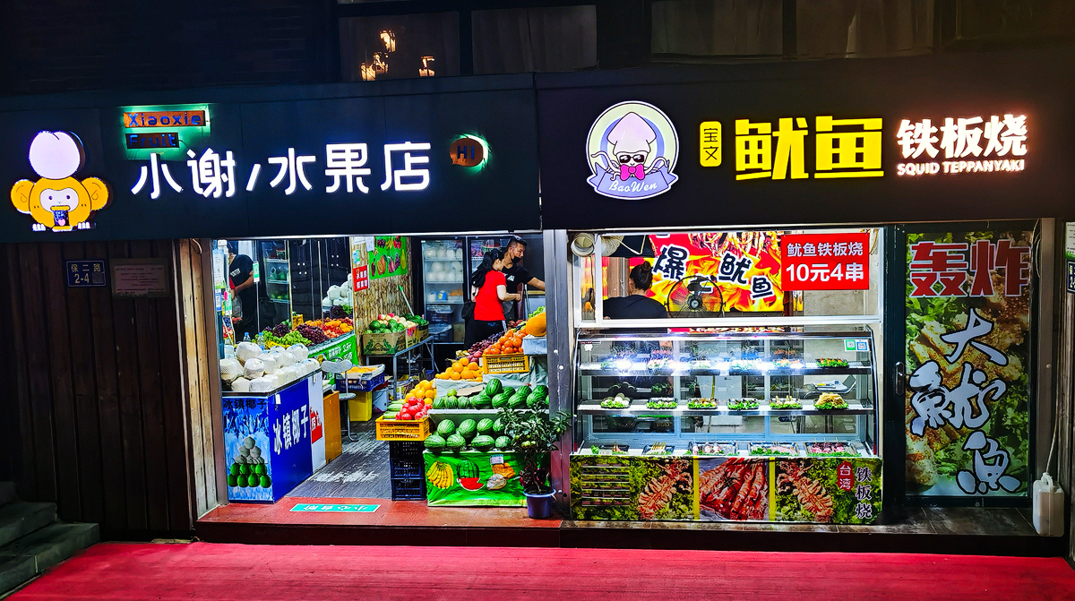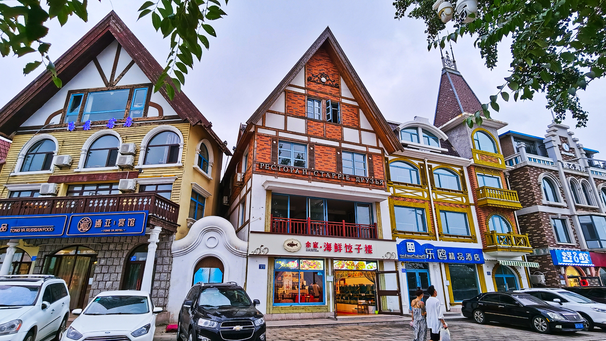 进城后看见路边有许多家小商铺,它们的招牌都与 山海关 有关啦, 比如 “ 山海关 浑锅 ”,“戚家军饺子 ”等