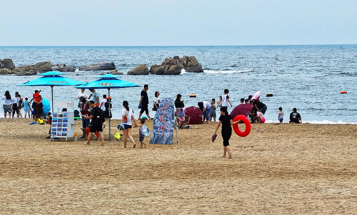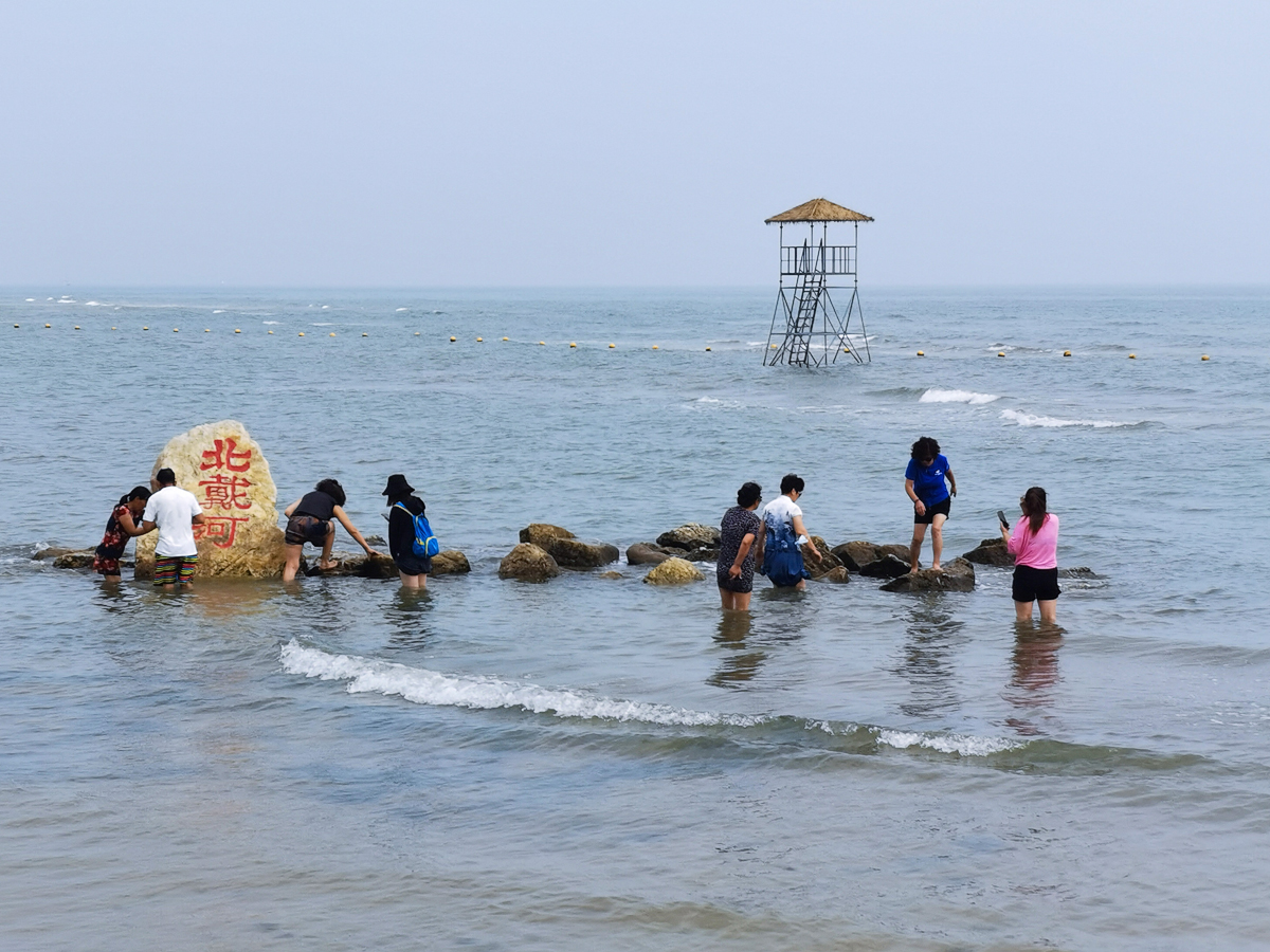 海边的这块“ 北戴河 ”石头,吸引许多游人来此拍照。