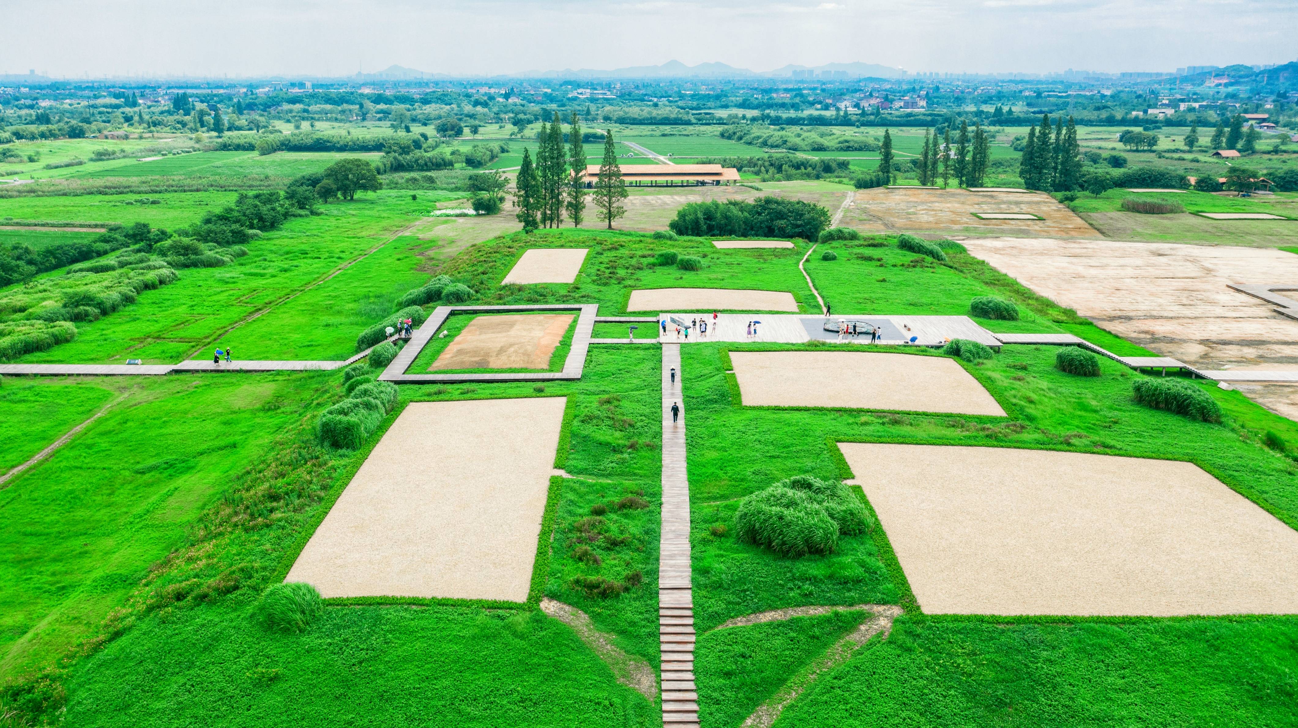 雉山站:如果没有无人机,那么就登上海拔30余米的雉山观景台吧!在这里可以俯瞰整个良渚古城城址区,公园美景一览无遗。