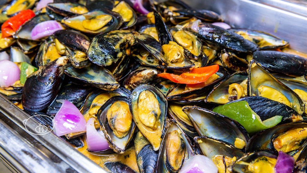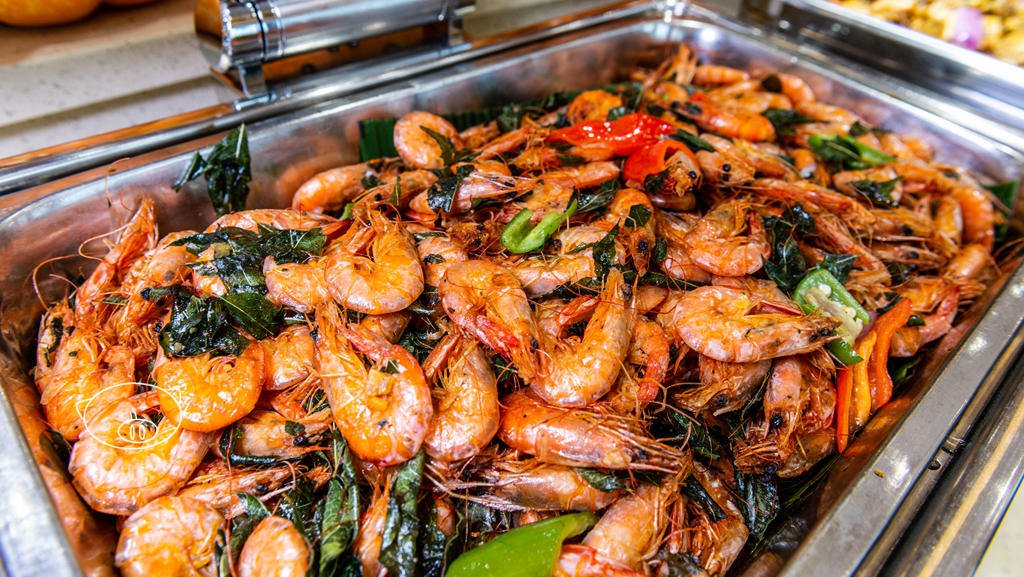 现在西餐厅在搞“东南亚美食节”,菜以东南亚味道为主。餐厅内的食品区品种较多,不过海鲜品种不多。熟食区以各种肉类为主,鸡、鱼、虾、贝类等,还有汤和甜品;现点是煎牛扒和配上牛腩、肉末等的粉面。