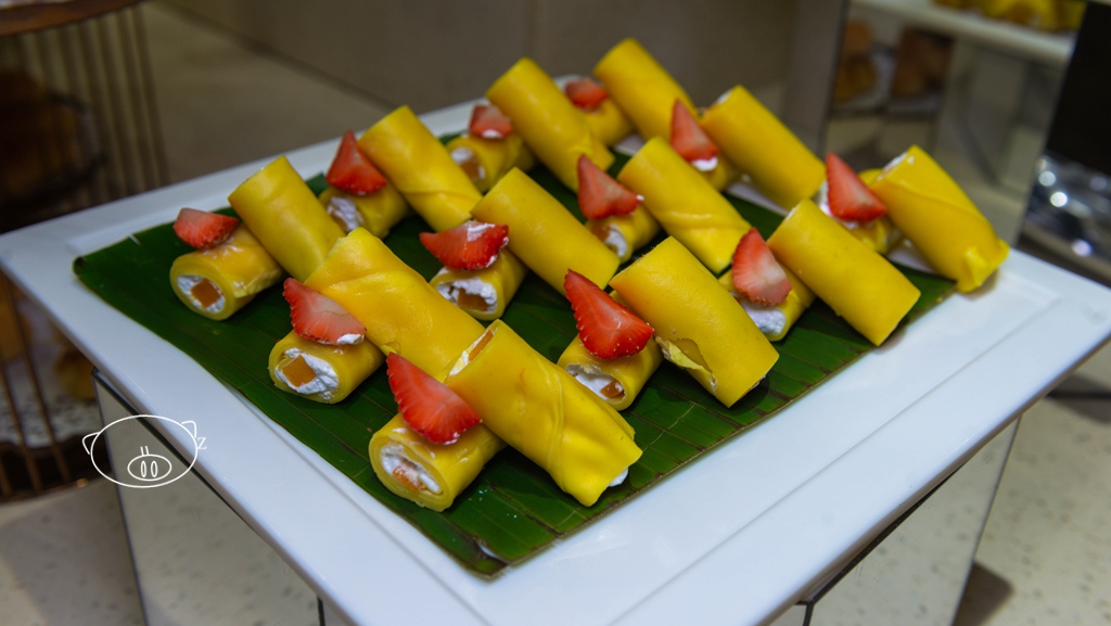 西点区点心很多,做的很精致,看着有食欲,寿司、沙拉、水果也是不少;