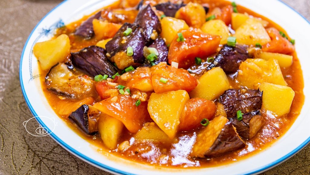 「农家地三鲜」选用当地特色的食材,农家特色,番茄、土豆、茄子,色香味全,又不符合时下健康饮食的理念。