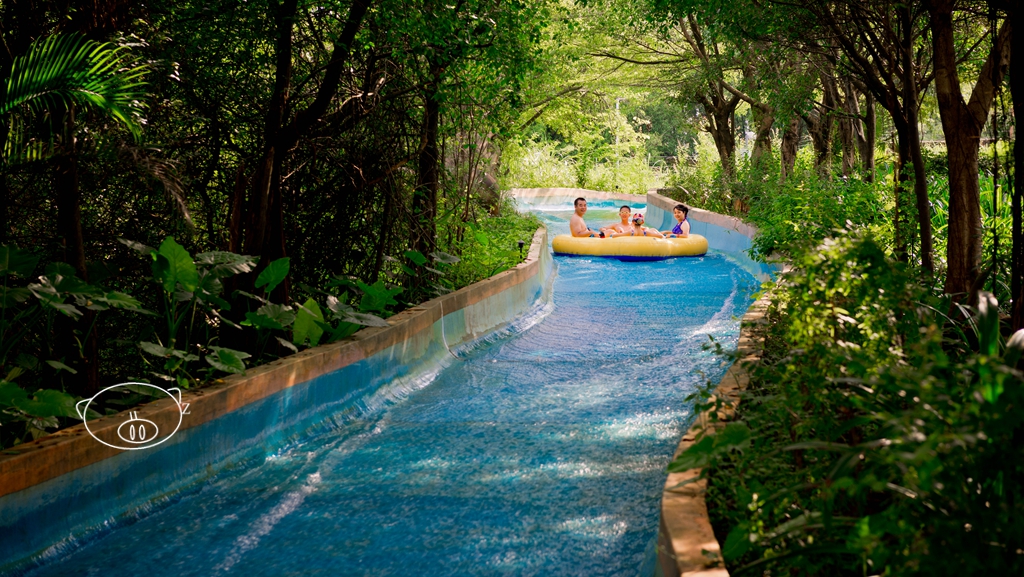 以“冰河历险”为主题的情景式漂流犹如一条绿色飘带,沿途设有冰岩瀑布、喷射水炮、水帘喷雾等设施,带来与众不同的漂流休闲感受,是广东极富特色的主题情景式漂流河道。漂流是非常安全的,一家子带小孩坐着漂也是很爽,可以去玩一下。