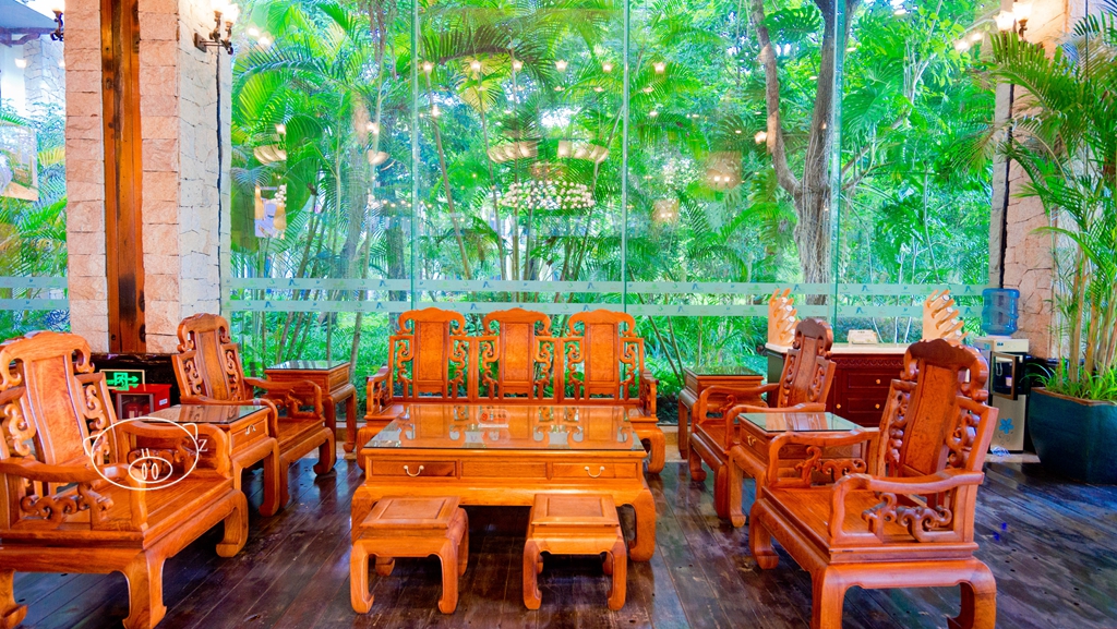 【丛林餐厅】是度假区内唯一的中餐厅,餐厅依山而建,四周都是树木,大厅装修风格独特,尤其是灯饰,特有魅力,餐厅可容纳1500人就餐,有11间以植物命名、大小不同的包房。在餐厅内用餐,可以静坐丛林间,边吃饭边欣赏迷人醉眼的湖光山色,大厅一般是团餐为主。也会推出不少的套餐,可以供客人选择。
