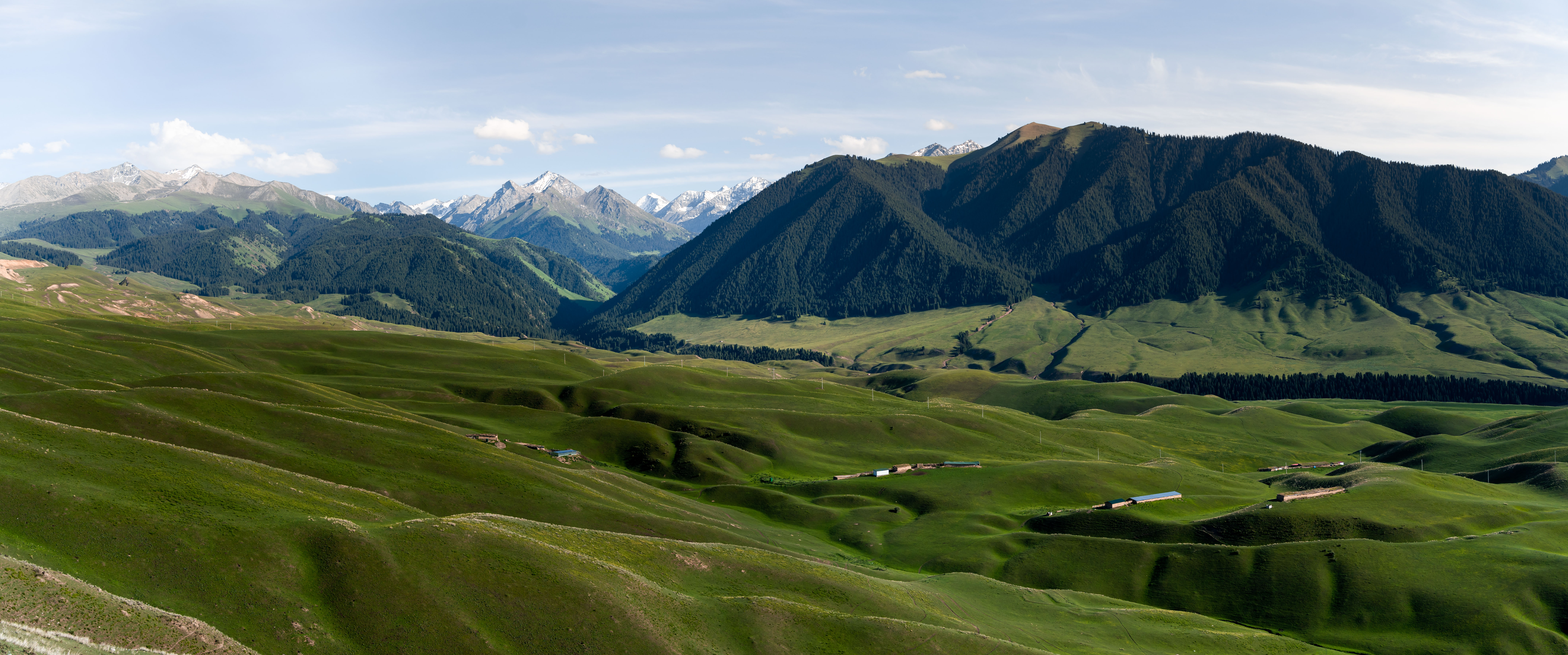平均海拔3000米以上的天山,就像一道天然屏障,阻隔着南部塔克拉玛干沙漠的干热气流,抵御着北部西伯利亚寒流。在与荒漠与雪峰的对峙中,孕育出独特的中天山草原 —— 生机盎然的伊犁河谷