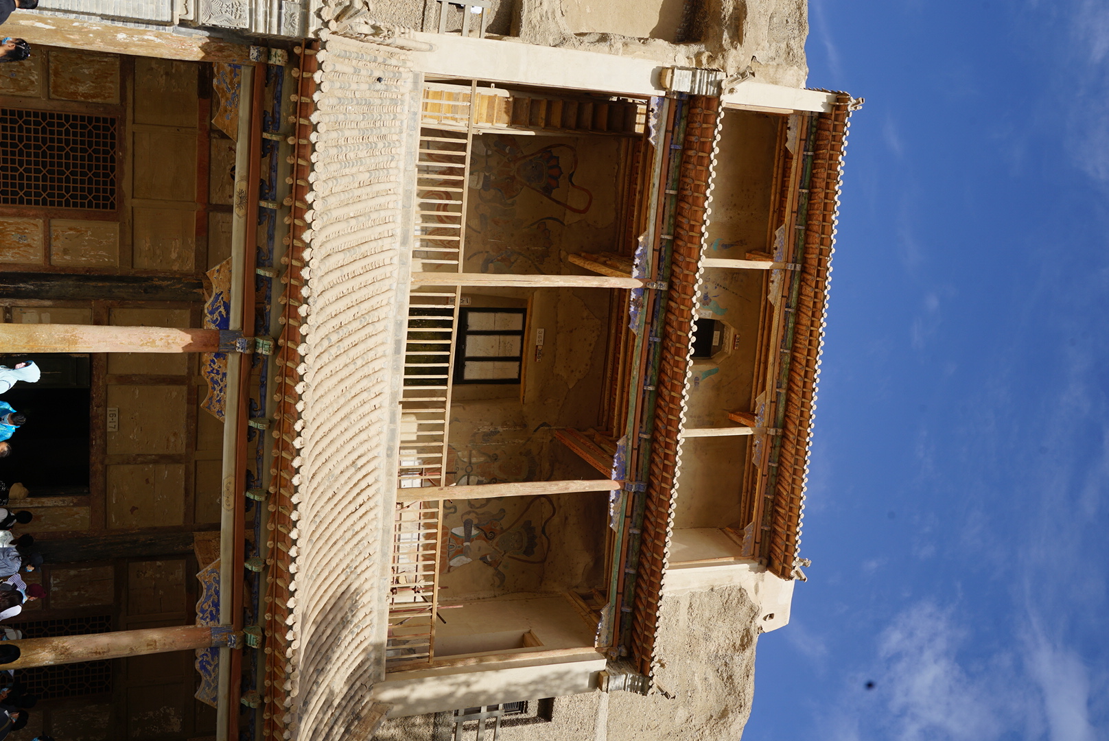 莫高窟,俗称千佛洞,坐落在河西走廊西端的敦煌。它始建于前秦宣昭帝苻坚时期,后历经北朝、隋朝、唐朝、五代十国、西夏、元朝等历代的兴建,形成巨大的规模,有洞窟735个,壁画4.5万平方米、泥质彩塑2415尊,是世界上现存规模最大、内容最丰富的佛教艺术地。