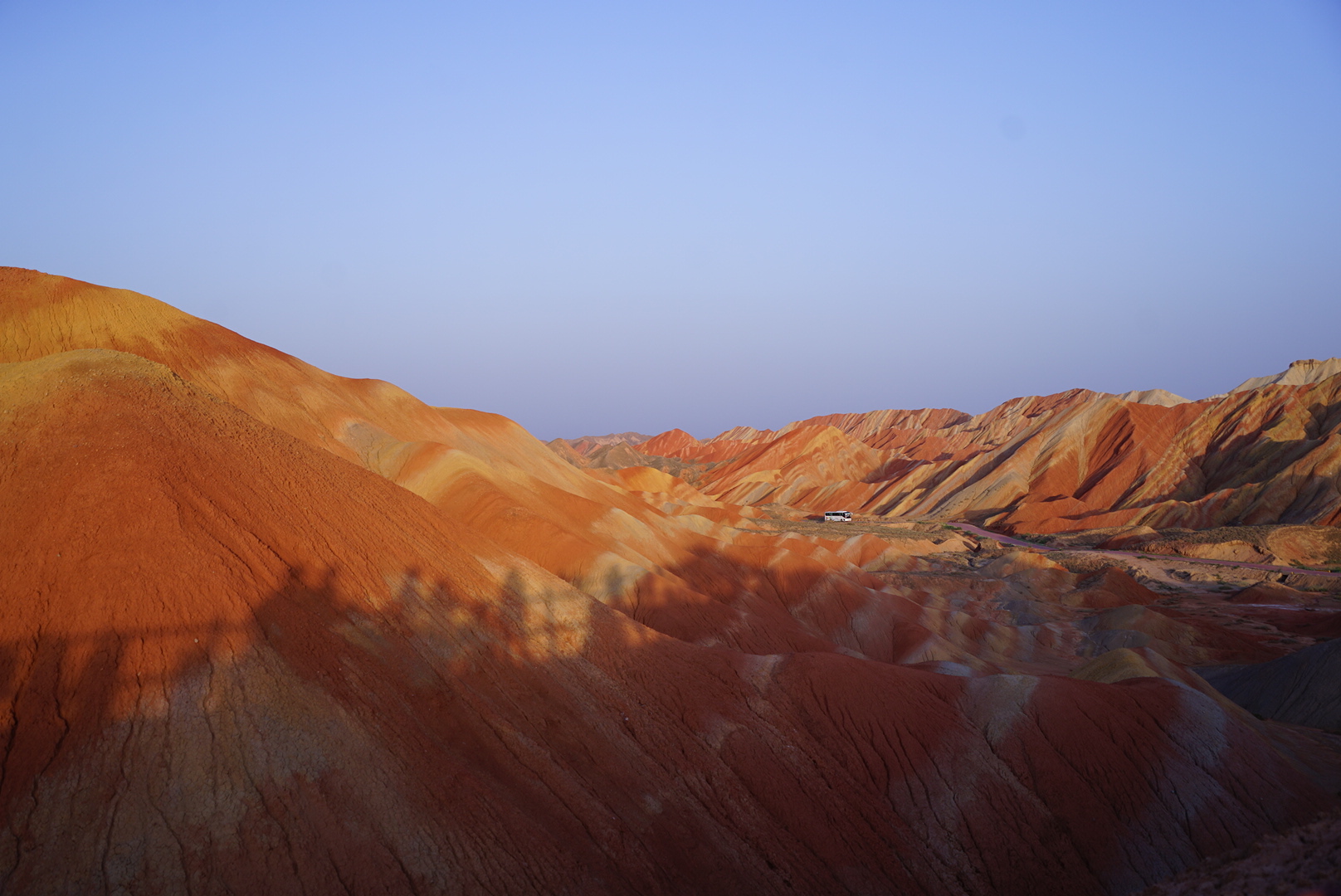 张掖丹霞地貌在方圆五十平方公里山地丘陵地带,有造型奇特,色彩斑斓,气势磅礴的丹霞地貌。丹霞是指红色砂砾岩经长期风化剥离和流水侵蚀,形成的孤立的山峰和陡峭的奇岩怪石,这里的丹霞地貌发育于距今约2亿年的前侏罗纪至第三纪。
