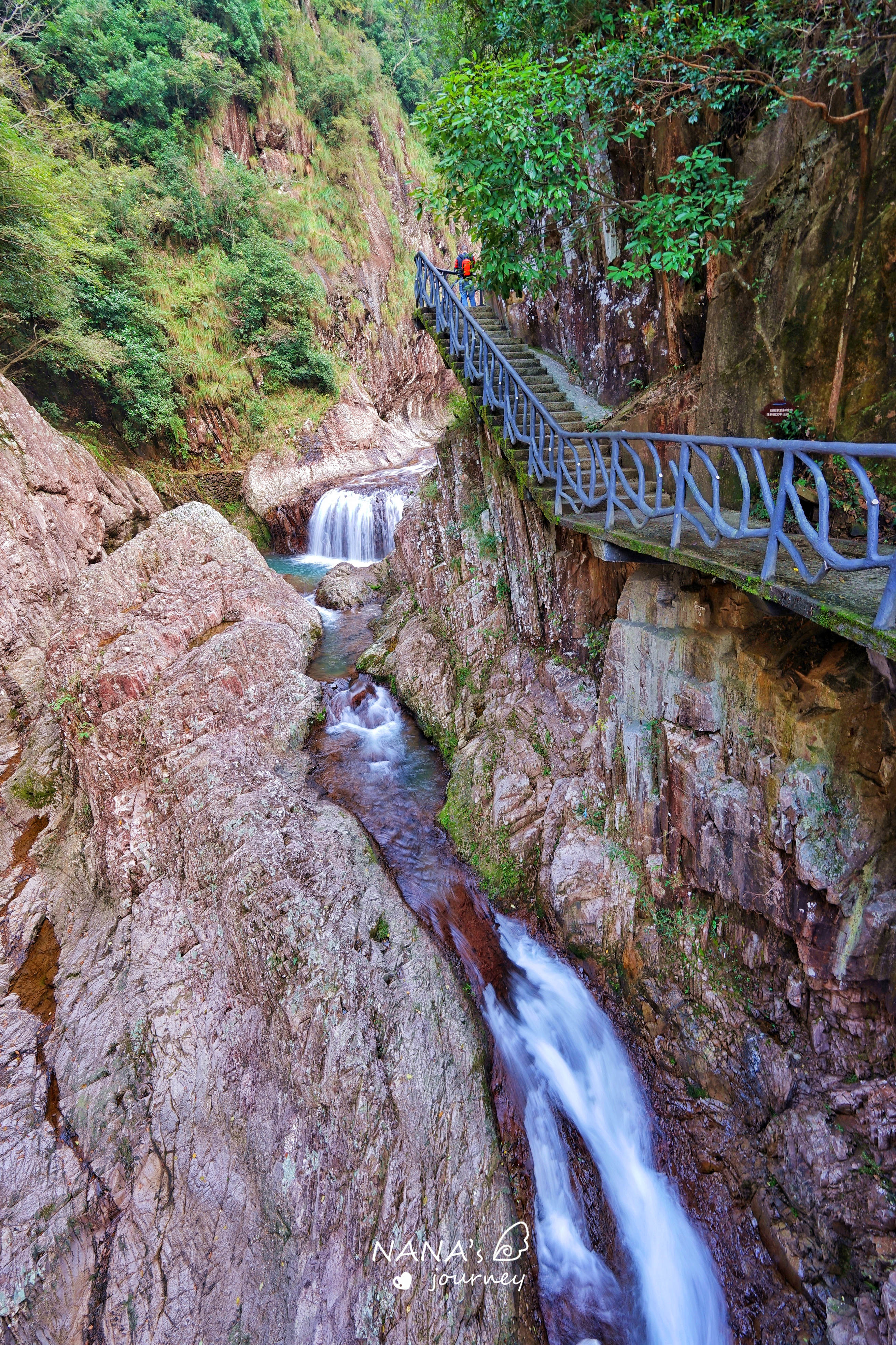 如果你以为到这里就结束而折返的话,就会错过龙湾潭最美的景色!继续的沿石阶攀爬,一步一层,飞瀑深潭的美景会逐渐、完整地展现在你面前,那才是最美的龙湾潭的七瀑七潭,顺着峡谷,一曲一折,顺石而下。这才是真正的浙江山水的秀美之处,总在最后的最后再来个意外的惊喜。